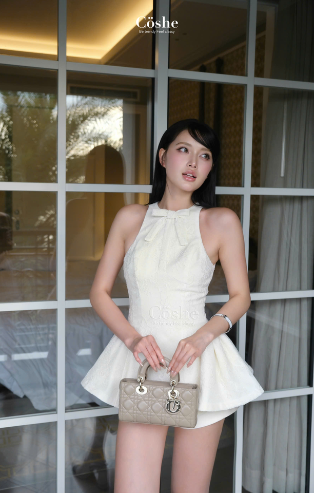Coshe MAVEN ชุดเสื้อเพ็บพลัมคล้องคอหรูหราพร้อมกางเกงขาสั้นสไตล์โมเดิร์นสำหรับผู้หญิงชุดใส่ประจำวันใส่ไปงานปาร์ตี้ชุดเดรสผู้หญิง