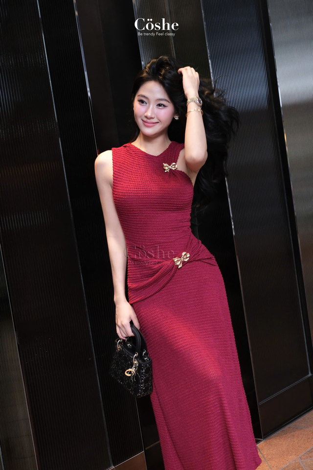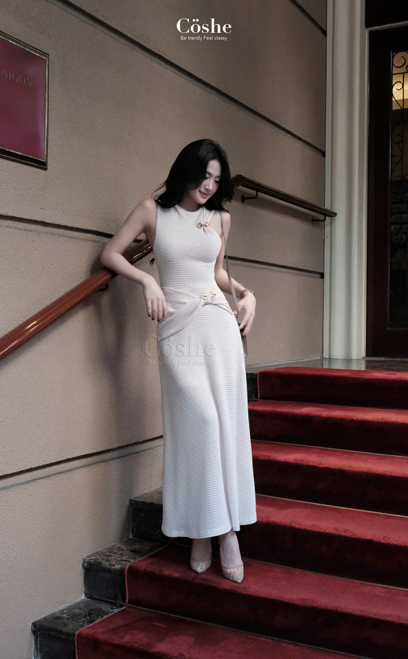 Coshe ชุดเดรสโซปาร์ชุดเดรสยาวหรูหราสำหรับผู้หญิงชุดเดรสยาวออกงานปาร์ตี้ออกเดทผู้หญิงชุดลำลอง