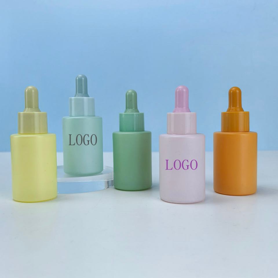 ขวดแก้วหยดขนาด 30 มล. สำหรับบรรจุภัณฑ์เครื่องสำอาง ขวดหยดน้ำมันเซรั่มบำรุงผิวหน้าสุดหรู ขวดทรงแบนแบบมาการอง