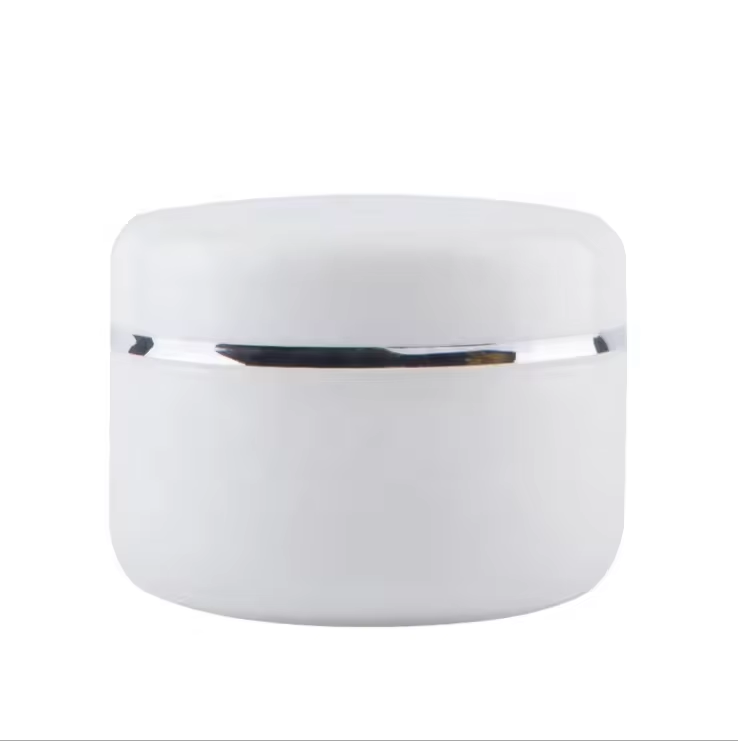 กระปุกใส่ครีมบำรุงผิวกายพร้อมขอบสีเงินสีขาว