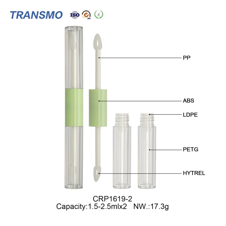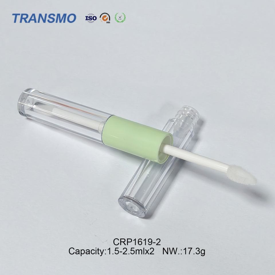 บรรจุภัณฑ์เครื่องสำอางอเนกประสงค์ 1.5-2.5 มล.*2 บรรจุภัณฑ์ลิปกลอสแบบสองหัว 2 in 1 หลอดลิปกลอสใส