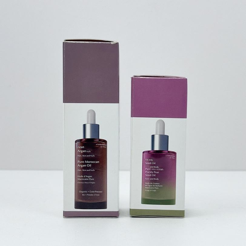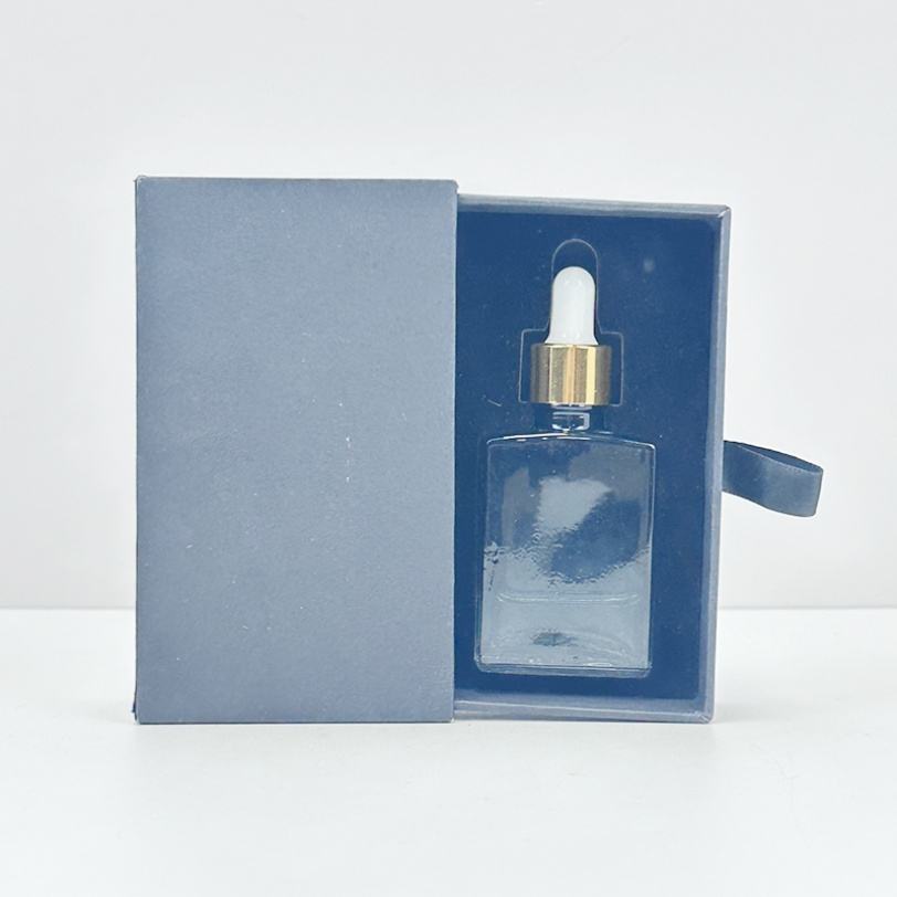 ชุดขวดหยดเครื่องสำอางและกล่องกระดาษรีไซเคิล ขนาด 60 มล./80 มล./120 มล. ปรับแต่งขนาดได้ บรรจุภัณฑ์น้ำมันเซรั่มแบบไหล่เรียบ
