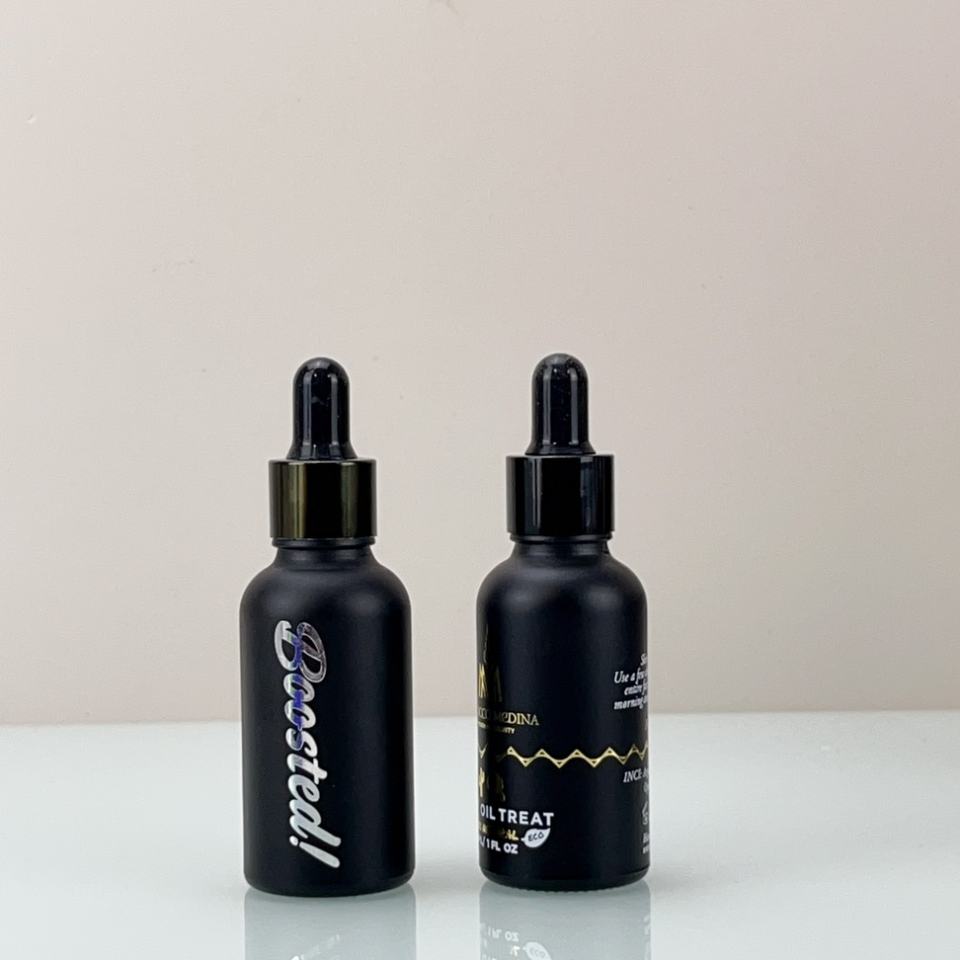 ขวดแก้วหยดน้ำมันหอมระเหยสำหรับดวงตา แบบด้านสีดำพิมพ์ลายซิลค์สกรีน 30 มล. สำหรับโลชั่นบำรุงผิวหน้า เซรั่ม และน้ำมันหอมระเหย