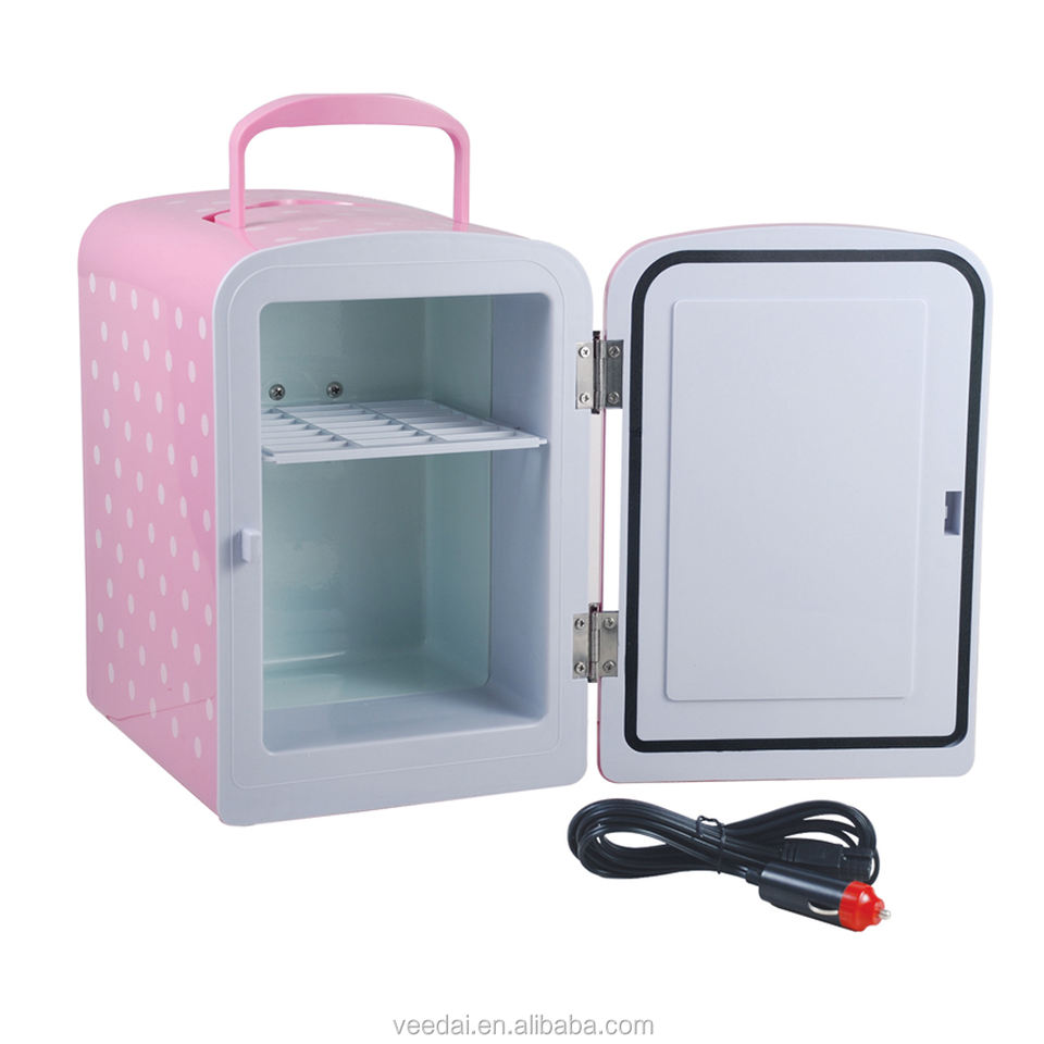 ตู้เย็นเครื่องสำอางแบบพกพา AC/DC สำหรับรถยนต์ ความจุ 4 ลิตร ใส่กระป๋องโค้กได้ 6 กระป๋อง