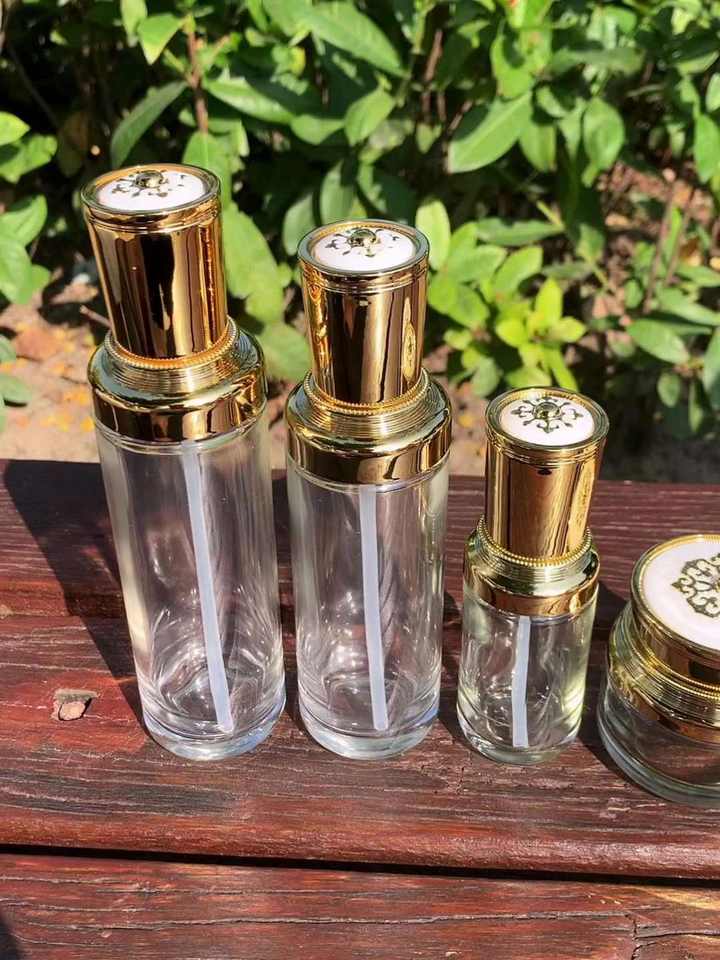 ขวดครีม 50 กรัม ฝาสีทอง ขวดเปล่าสำหรับผลิตภัณฑ์บำรุงผิว ขวดแก้วสำหรับโลชั่นและครีม