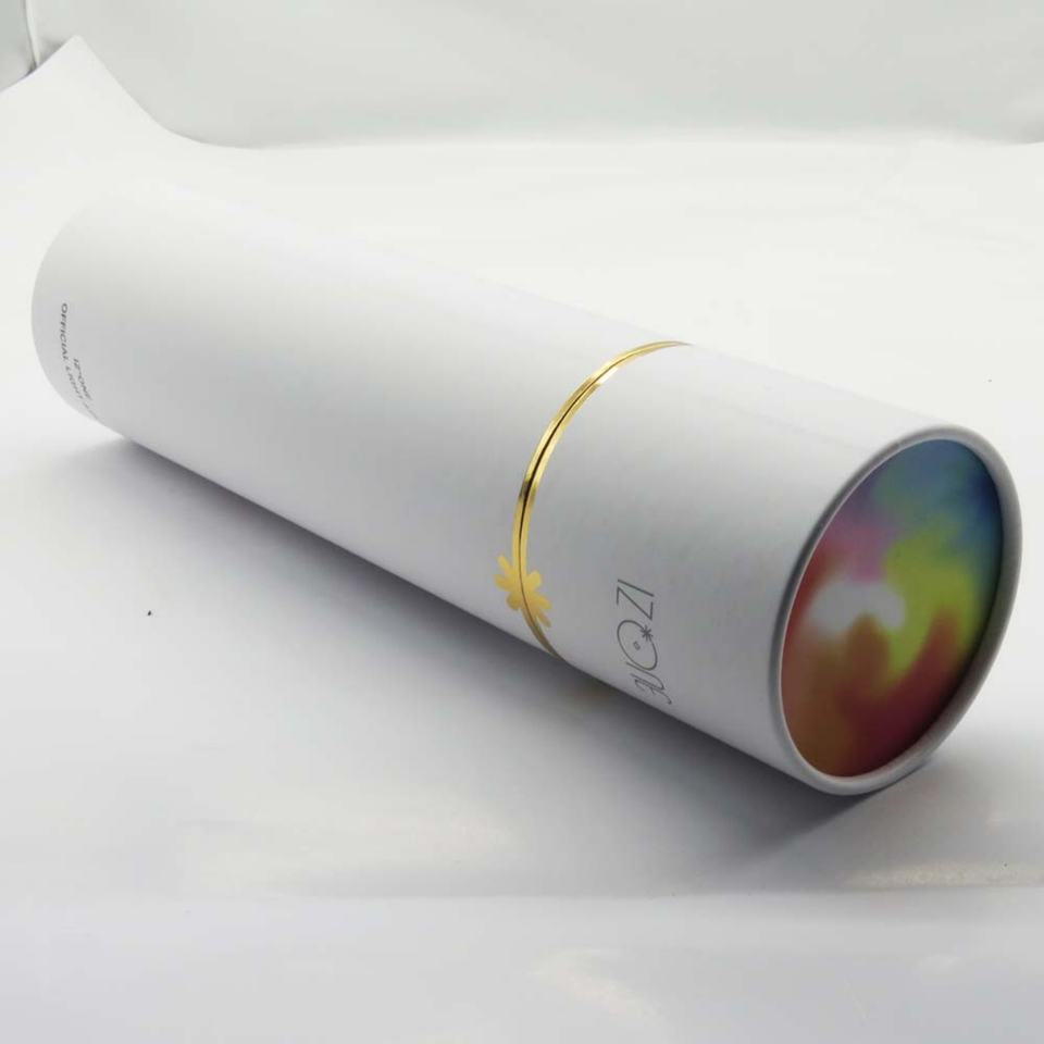 กล่องบรรจุภัณฑ์เครื่องสำอางแบบหลอดกระดาษแข็งสีขาวปั๊มฟอยล์ทอง กล่องบรรจุภัณฑ์เสื้อยืดแบบหลอด