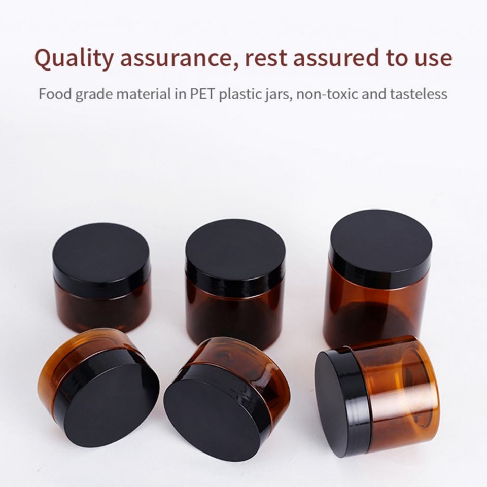 บรรจุภัณฑ์เครื่องสำอาง 100 มล. 150 มล. 200 มล. 250 มล. ขวดครีมพลาสติก PET สีเหลืองอำพัน สีดำ ฝาเกลียว พิมพ์โลโก้ตามสั่งด้วยซิลค์สกรีน