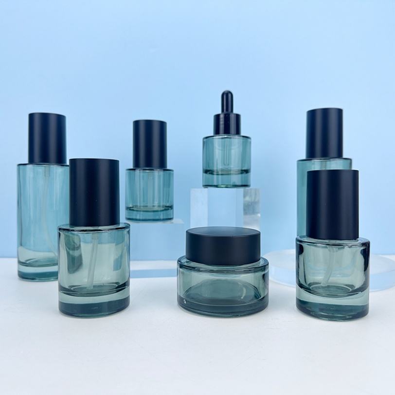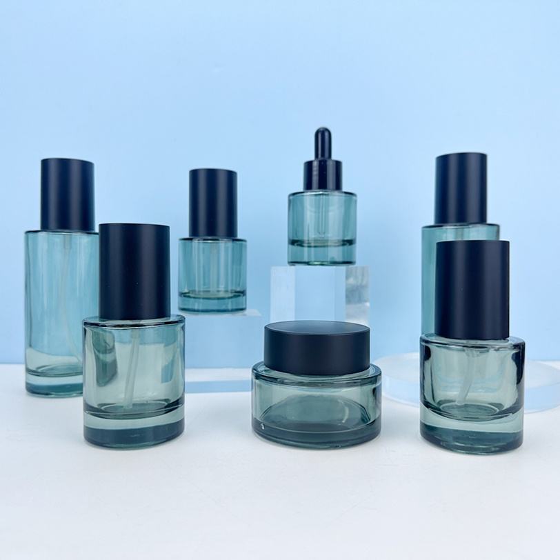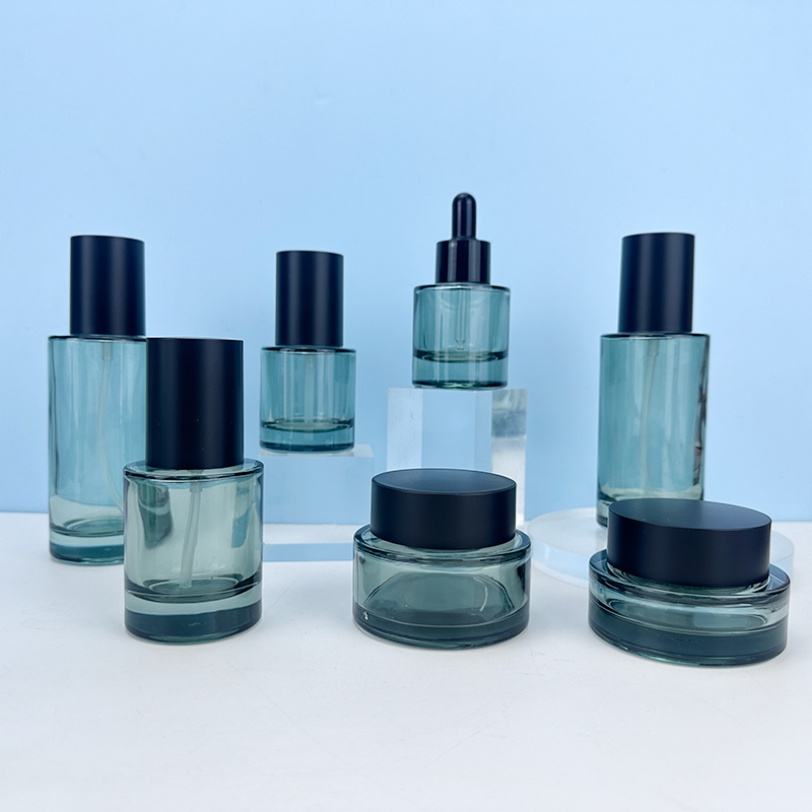 ชุดบรรจุภัณฑ์เครื่องสำอาง 50 กรัม 40 มล. 100 มล. 120 มล. 150 มล. ขวดโลชั่นแก้วฝาขุ่น