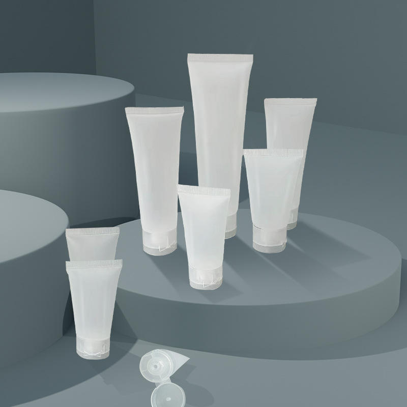 หลอดพลาสติกสำหรับเครื่องสำอางแบบฝ้า ฝาเปิดปิดแบบพลิก โปร่งใส สำหรับบรรจุภัณฑ์ทำความสะอาดผิวหน้าและโลชั่น ขนาด 50 มล. 100 มล. 120 มล.