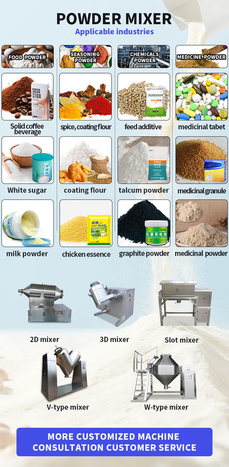 เครื่องผสม, เครื่องสำอาง, อาหาร, แป้งประเภทสินค้า
