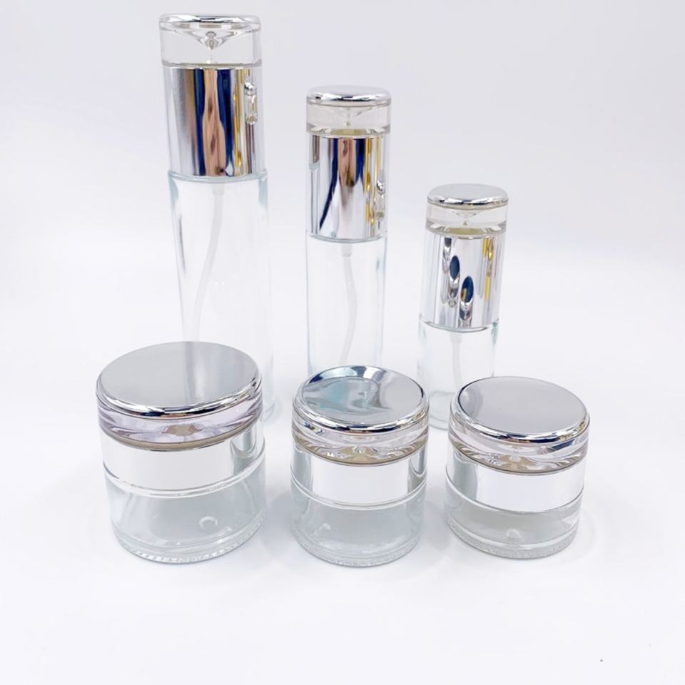 ชุดขวดและกระปุกเครื่องสำอาง ขนาด 20 มล. 30 มล. 40 มล. 50 มล. 60 มล. 80 มล. 100 มล. 120 มล. 30 กรัม 50 กรัม ขวดแก้ว ภาชนะบรรจุเครื่องสำอางและกระปุก