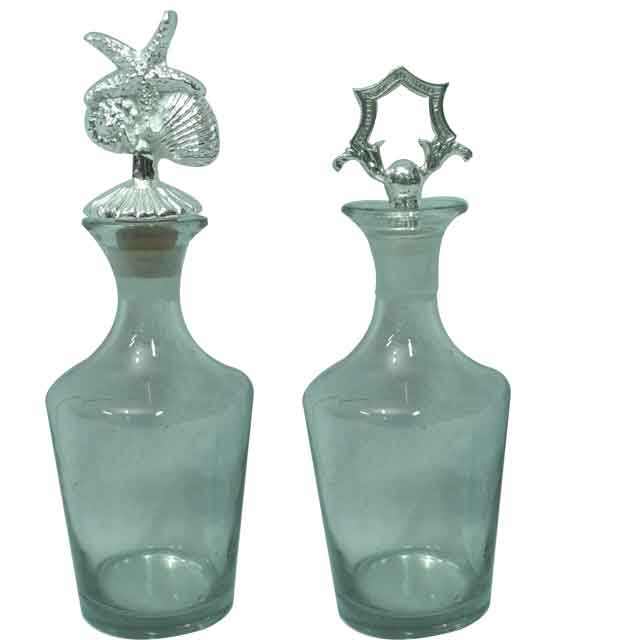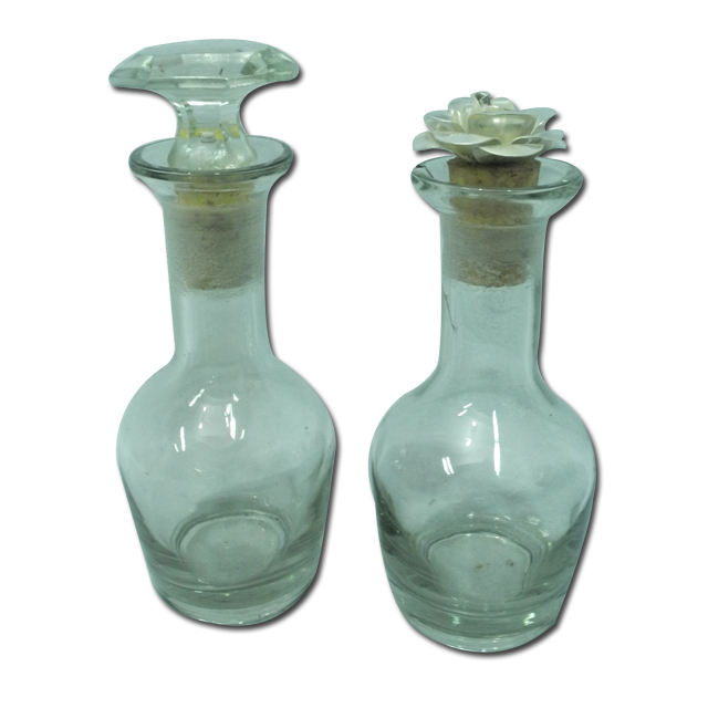 ร้านเครื่องสำอาง ขวดแก้วเก็บน้ำหอมและน้ำมันใส่ผม ขวดใส่ของเหลวสีเขียวพร้อมฝาตกแต่ง ขวดน้ำหอมแก้ว