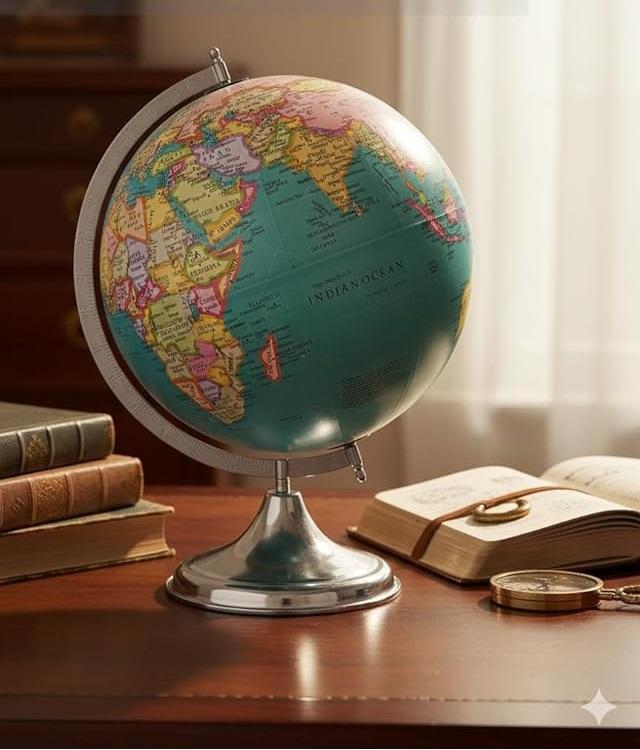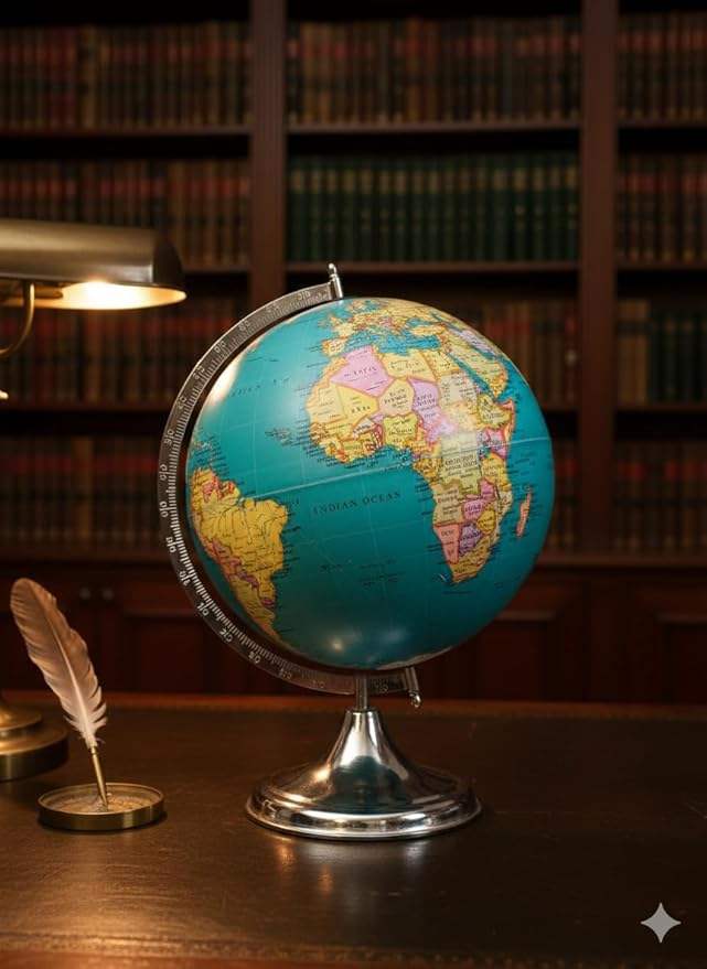 ลูกโลกหมุนได้พร้อมฐานโลหะโค้ง ใช้ตกแต่งบ้าน ตกแต่งสำนักงาน และวางบนโต๊ะทำงาน