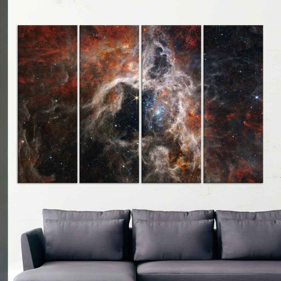 ภาพพิมพ์บนผ้าใบลายเนบิวลาอวกาศ - ศิลปะติดผนังลายกาแล็กซีลึก ชุดผ้าใบ 4 ชิ้น