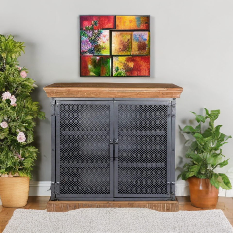 ตู้ไซด์บอร์ดไม้ 2 ประตู สไตล์โมเดิร์นอุตสาหกรรมแบบคอสโมโพลิตัน สำหรับห้องนั่งเล่น ห้องรับประทานอาหาร ห้องนอน โฮมออฟฟิศ และโรงแรม