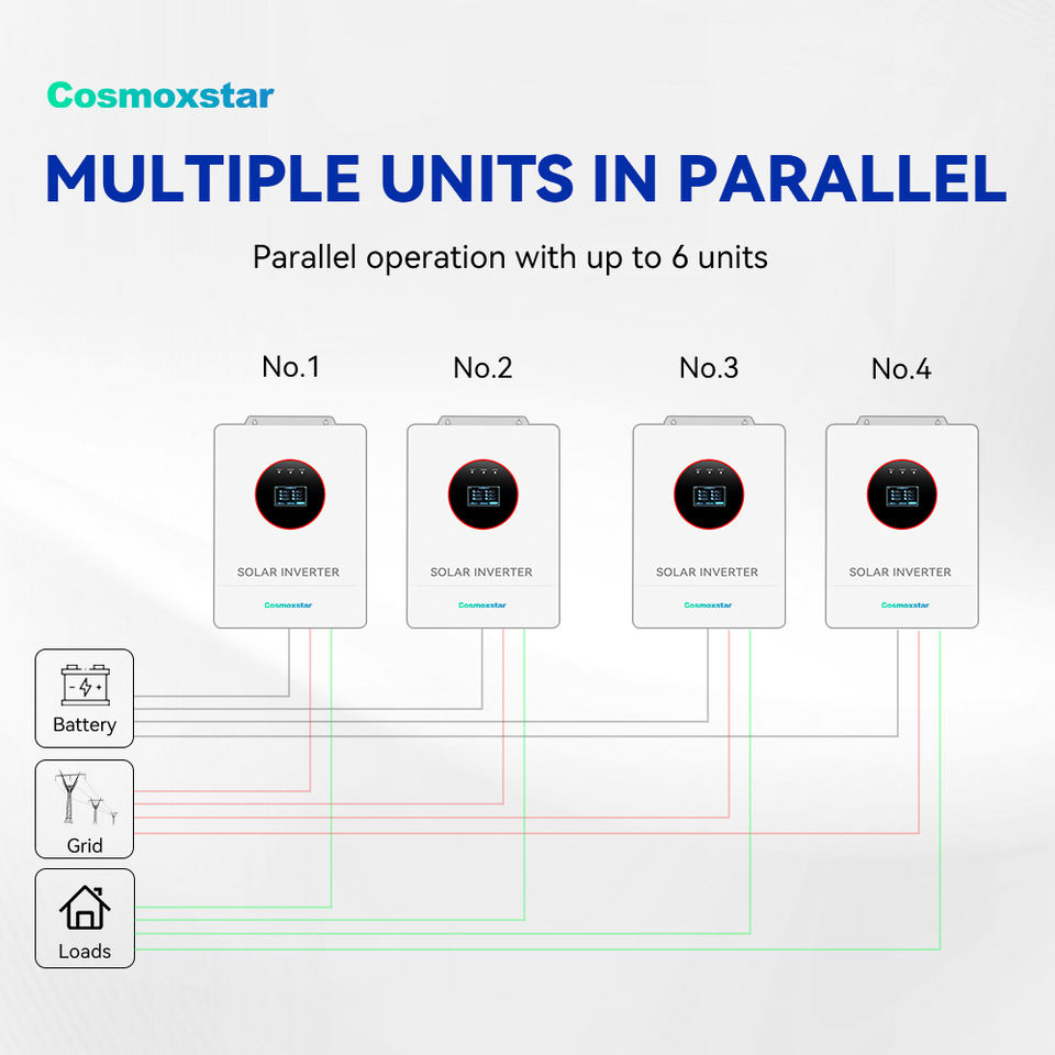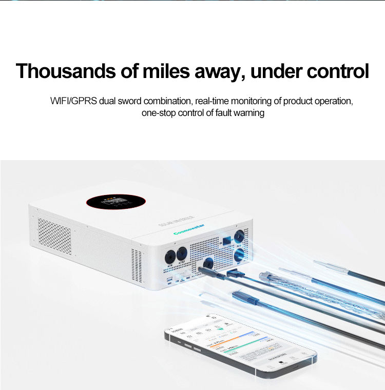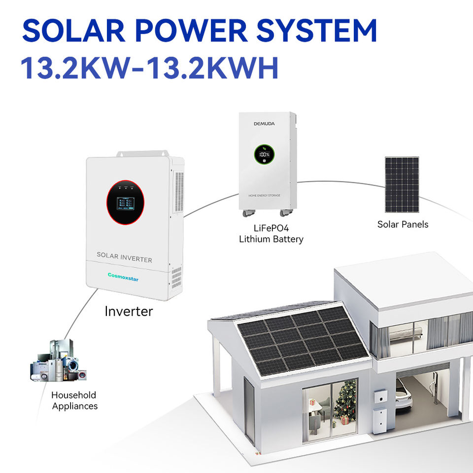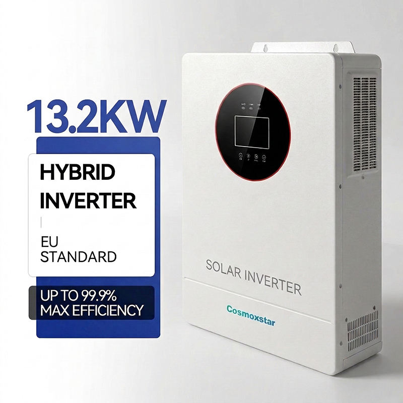 อินเวอร์เตอร์ไฮบริดแบบพกพา Cosmoxstar 13.2kva มาตรฐานยุโรป 1 เฟส เชื่อมต่อระบบไฟฟ้ากระแสสลับ 48v 230v พร้อมระบบกักเก็บพลังงาน ประสิทธิภาพ 99%