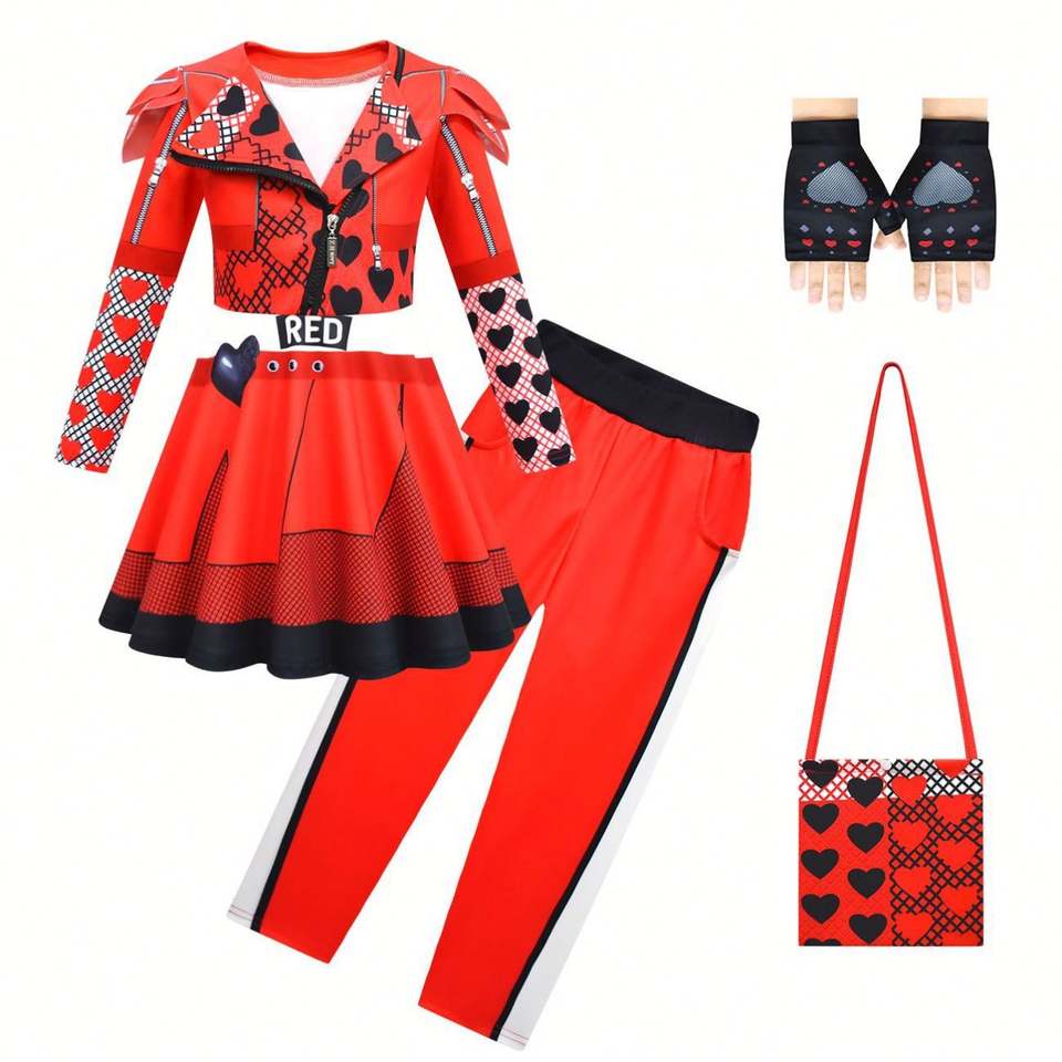 ชุดคอสเพลย์ฮาโลวีนชุดสีแดง2ชิ้นพร้อมถุงมือเครื่องแต่งกายในภาพยนตร์