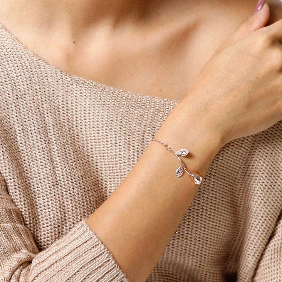 สร้อยข้อมือ/ข้อเท้าประดับจี้ดอกกุหลาบ โฉมงามกับเจ้าชายอสูร ทอง 18k สำหรับผู้หญิง ของขวัญวันวาเลนไทน์