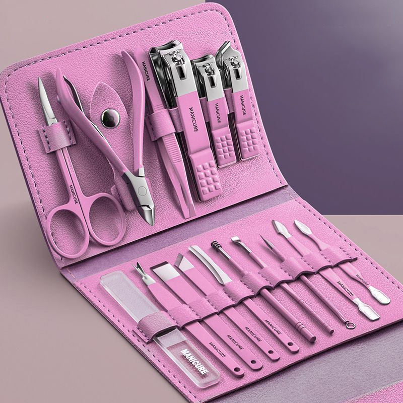 ชุดอุปกรณ์ดูแลเล็บมือเล็บเท้าแบบปรับแต่งได้สำหรับผู้ชายและผู้หญิง พร้อมตะไบเล็บและกล่องหนัง