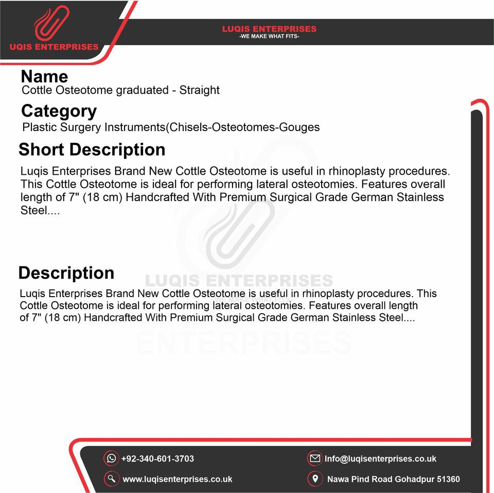 เครื่องมือผ่าตัดกระดูกแบบตรง Cottle Osteotome ผลิตจากสแตนเลสเกรดทางการแพทย์