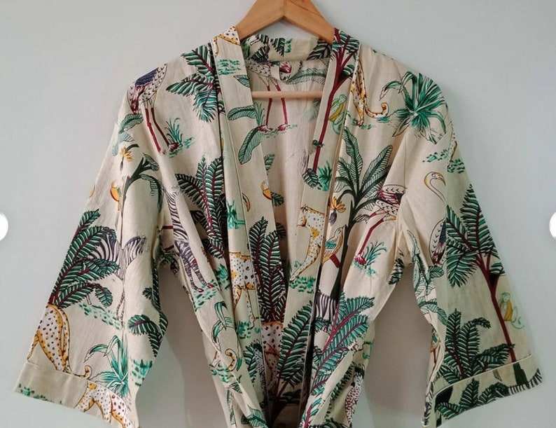 ชุดคลุมกิโมโนลายสัตว์ผ้าฝ้าย สไตล์เก๋ไก๋ สำหรับใส่คลุมชุดว่ายน้ำ ชุดลำลองสำหรับรีสอร์ท ชุดคลุมฤดูร้อน ฤดูใบไม้ผลิ แห้งเร็ว