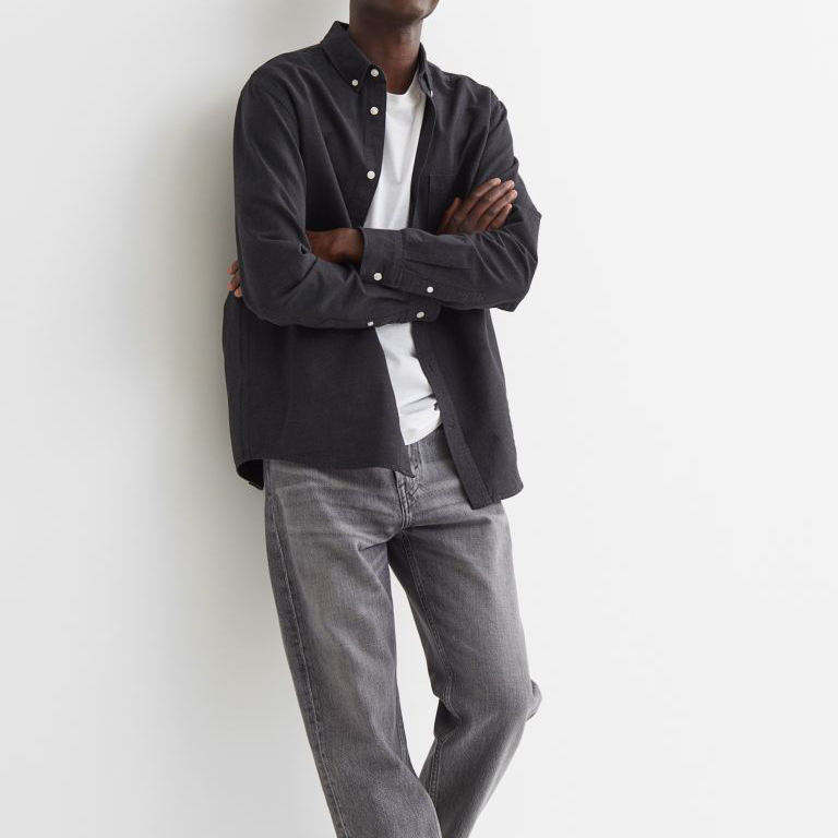 เสื้อเชิ้ตลำลองแขนยาวสำหรับผู้ชายผ้าฝ้ายกันยับระบายอากาศได้ดีผ้าคอตตอนพลัสไซส์สีทึบ