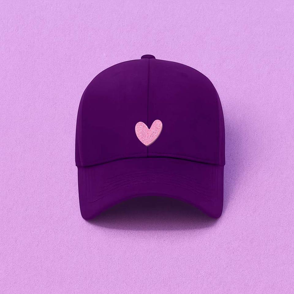 หมวกเบสบอลผ้าฝ้ายมีโลโก้ด้านหน้าปักเลื่อมรูปหัวใจสีชมพู