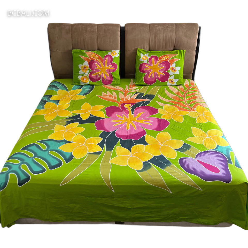 Hot Sale Cotton Bedsheet Handpainting Floral Design Originally Made in Bali by Balinese Artisans High Quality