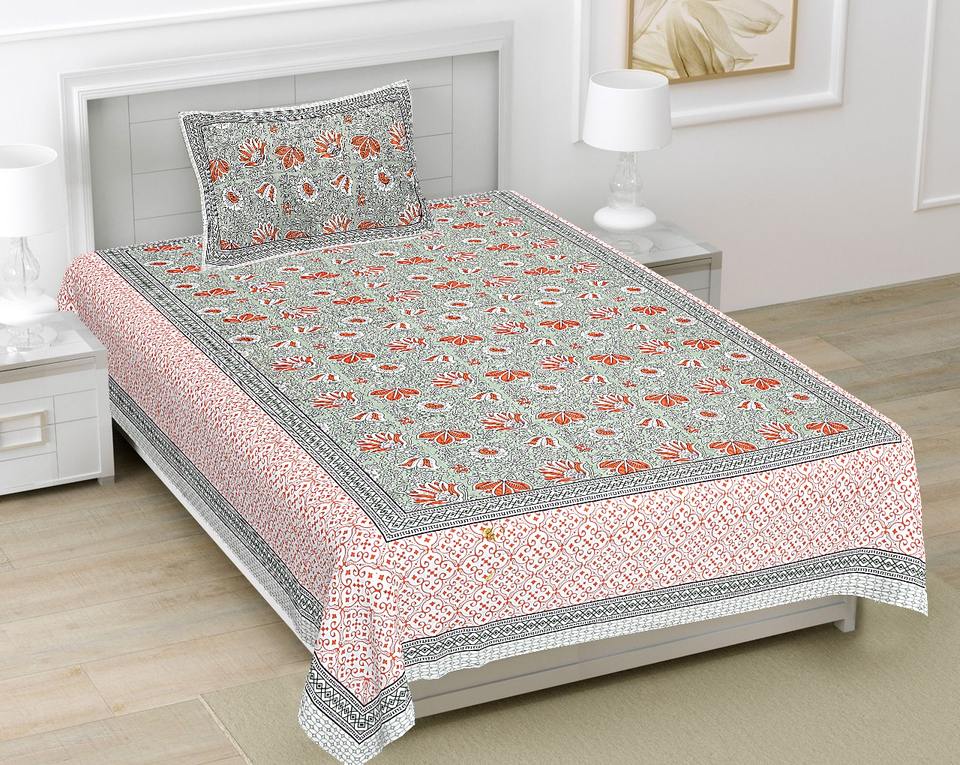 ชุดผ้าปูที่นอนและปลอกหมอนผ้าฝ้าย ชุดเครื่องนอนทำมือสไตล์อินเดีย ชุดผ้าปูที่นอนลายพิมพ์บล็อกแบบอินเดีย