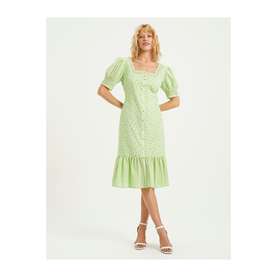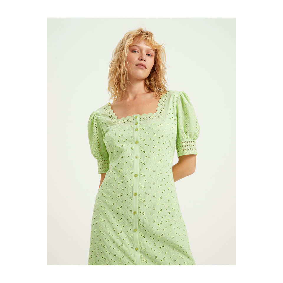 ชุดเดรสผ้าฝ้ายผสมปักลาย