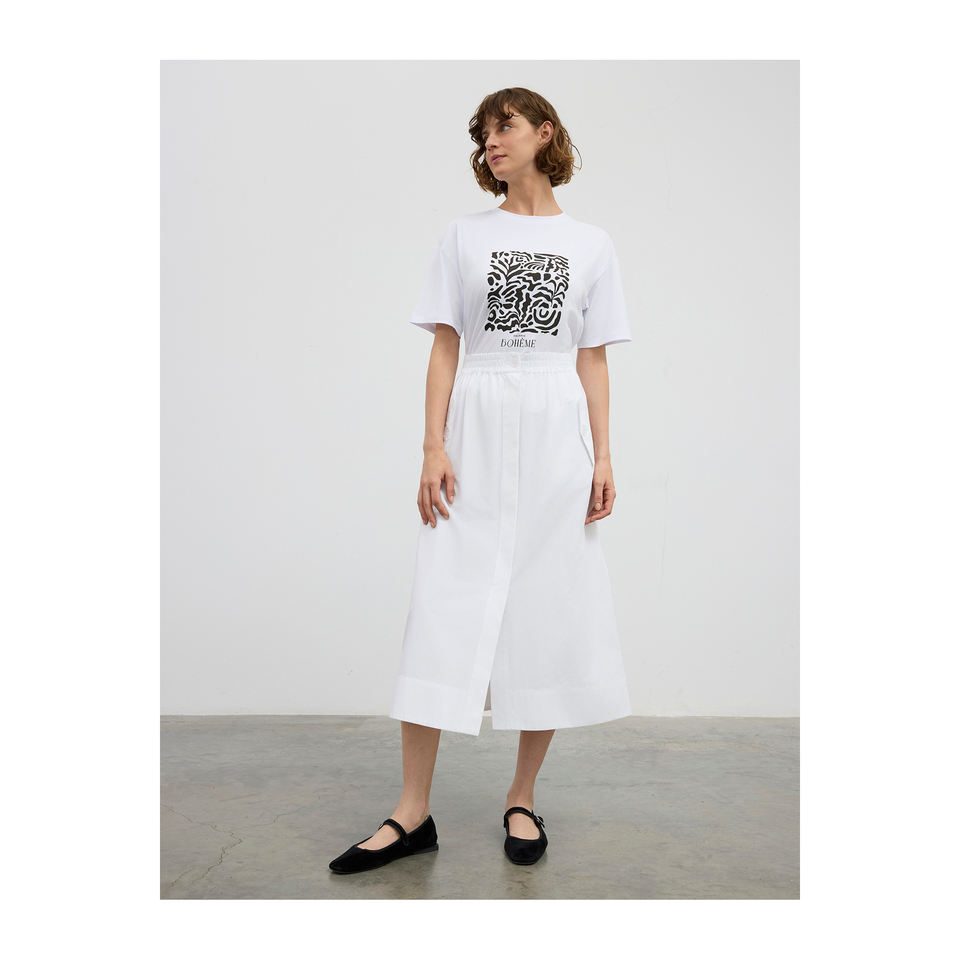 กระโปรงทรงบานผ้าคอตตอนผสม มีกระเป๋าหน้า เอวยางยืด ใส่สบาย สีขาว สำหรับผู้หญิง/เด็กผู้หญิง