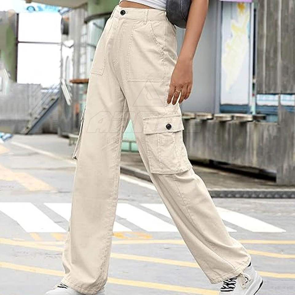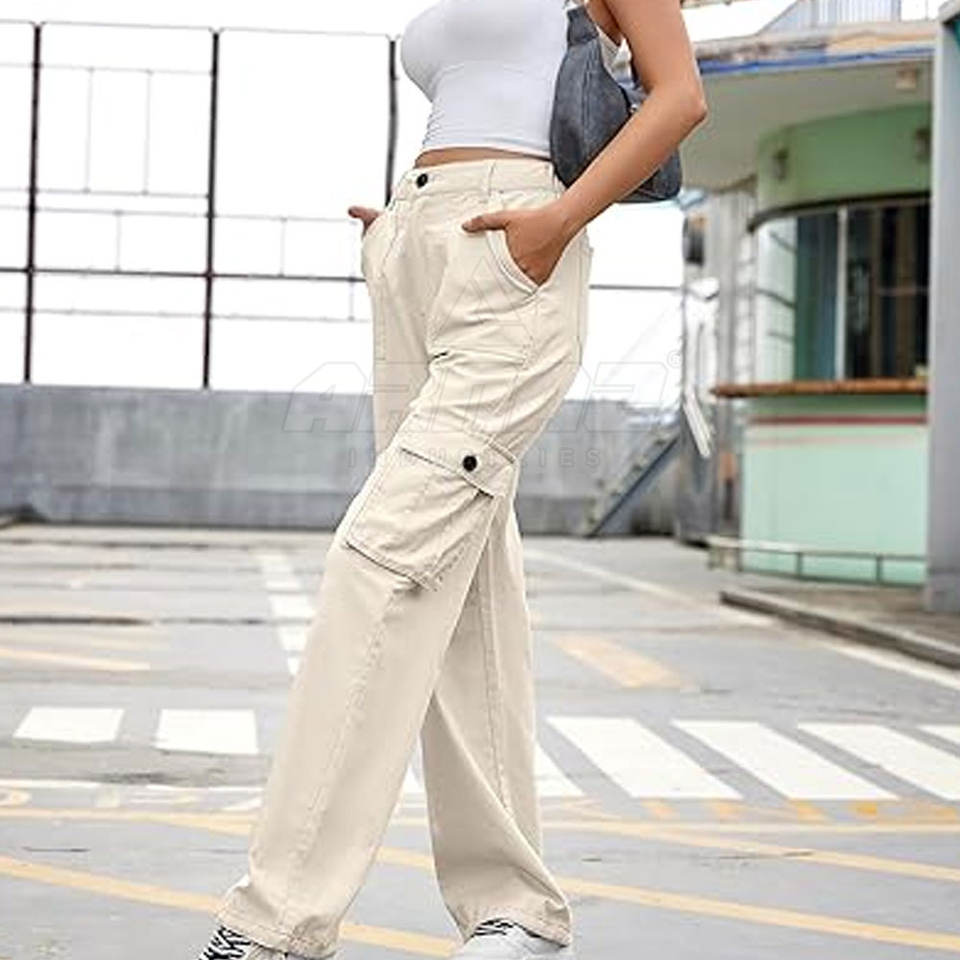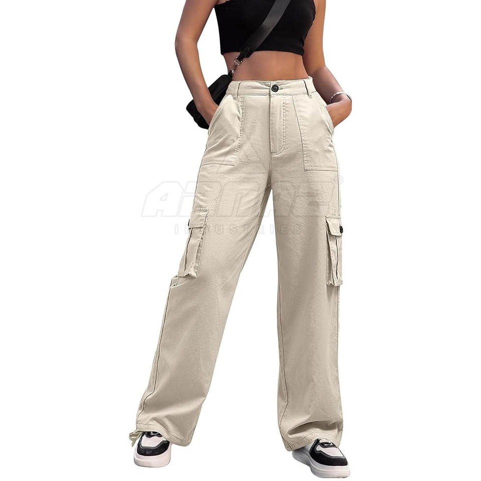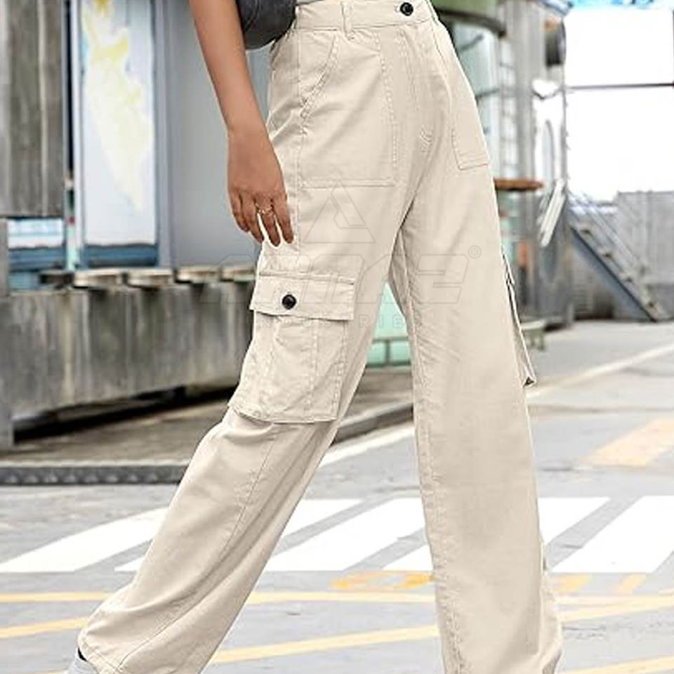 Cotton Blend Straight Leg Cargo Pant With Adjustable Hem Breathable Lightweight Women Cargo Pant