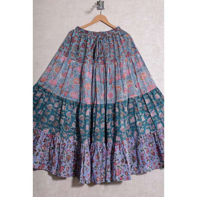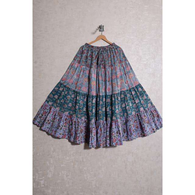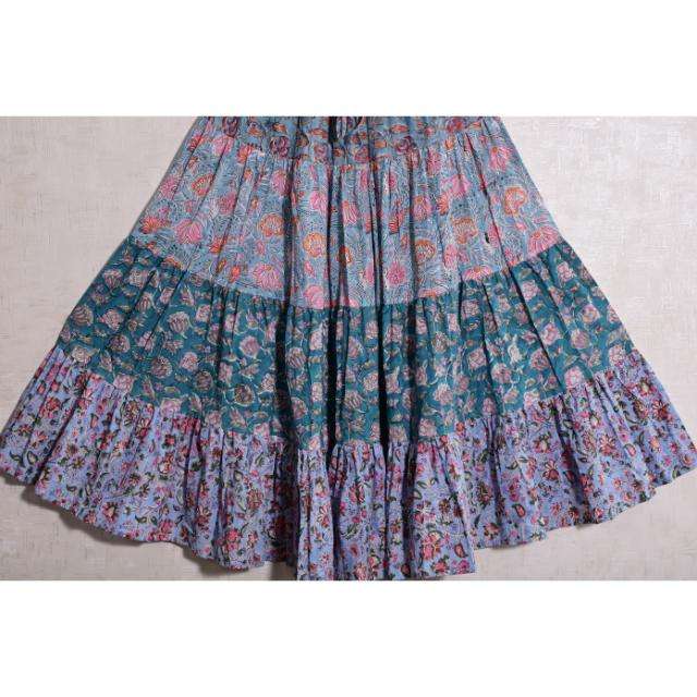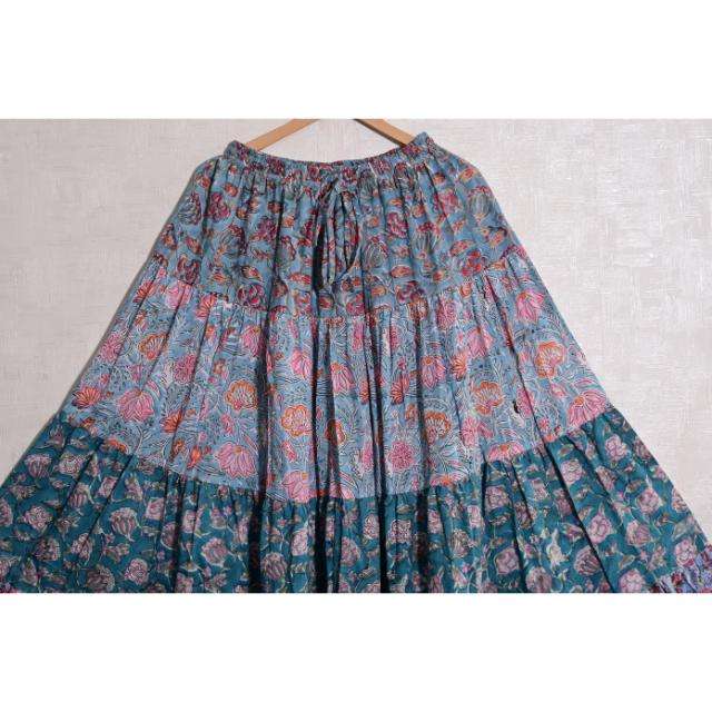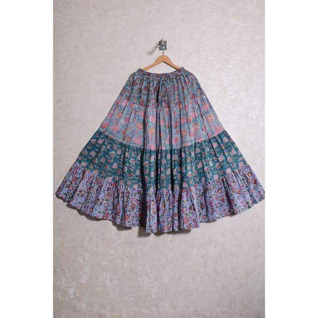กระโปรงยาวลายดอกพิมพ์บล็อกผ้าฝ้ายสไตล์โบฮีเมียนลำลอง งานแฮนด์เมด ซักได้ ดีไซน์จีบ เอวธรรมชาติ แม็กซี่ สำหรับผู้หญิง ฤดูร้อน