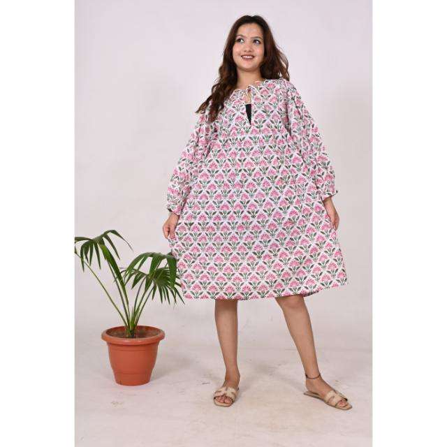 ชุดเดรสสั้นผ้าฝ้ายพิมพ์ลายบล็อกชุดเดรสสั้นสำหรับผู้หญิงชุดใส่ในฤดูร้อนชุดเดรสพิมพ์ลายชุดชายหาด