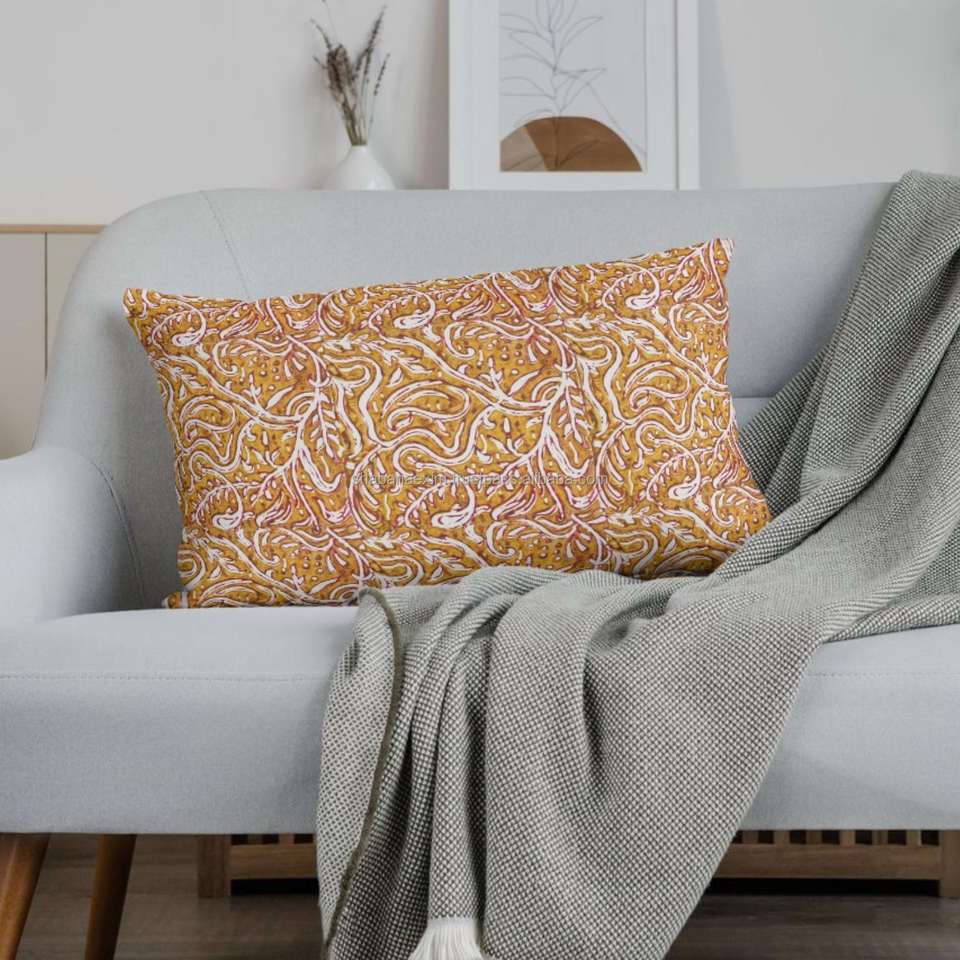 ปลอกหมอนอิงผ้าฝ้ายพิมพ์ลายชนเผ่าสีเหลือง ขนาด 14x36 นิ้ว น้ำหนักเบา ลายพิมพ์ชนเผ่า ปลอกหมอนอิงแบบพิมพ์ลาย