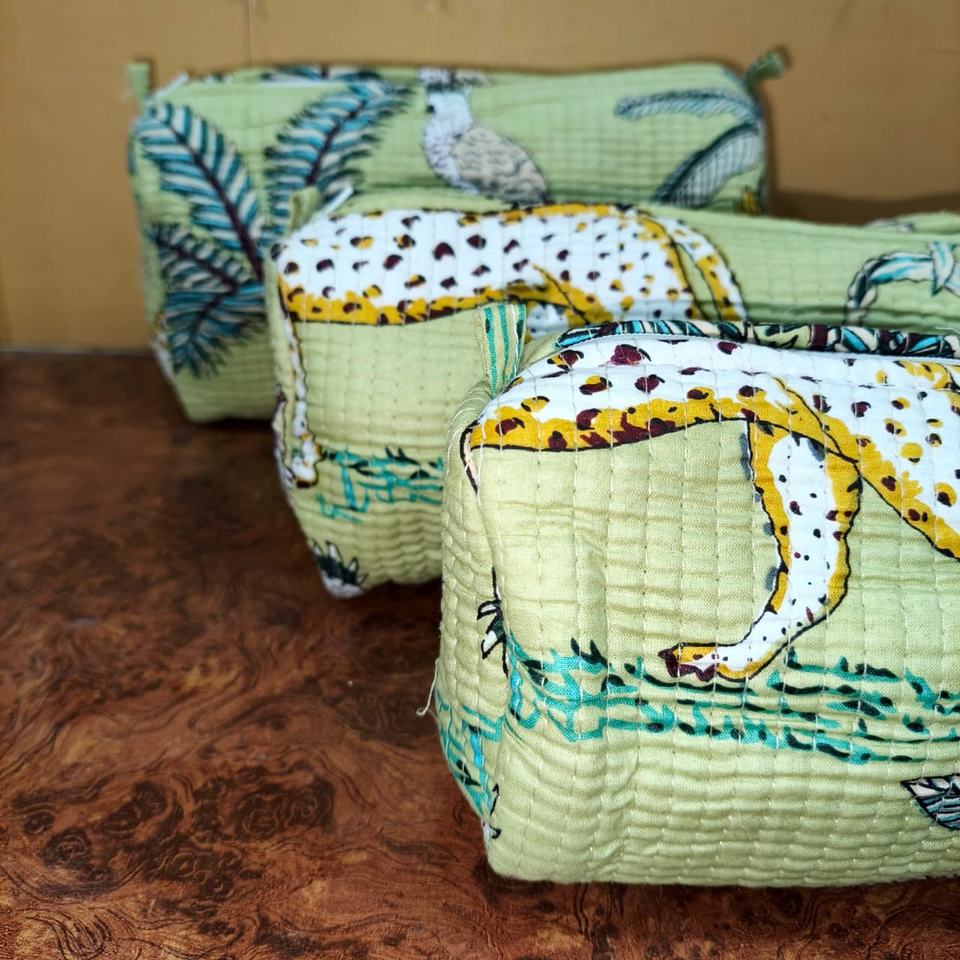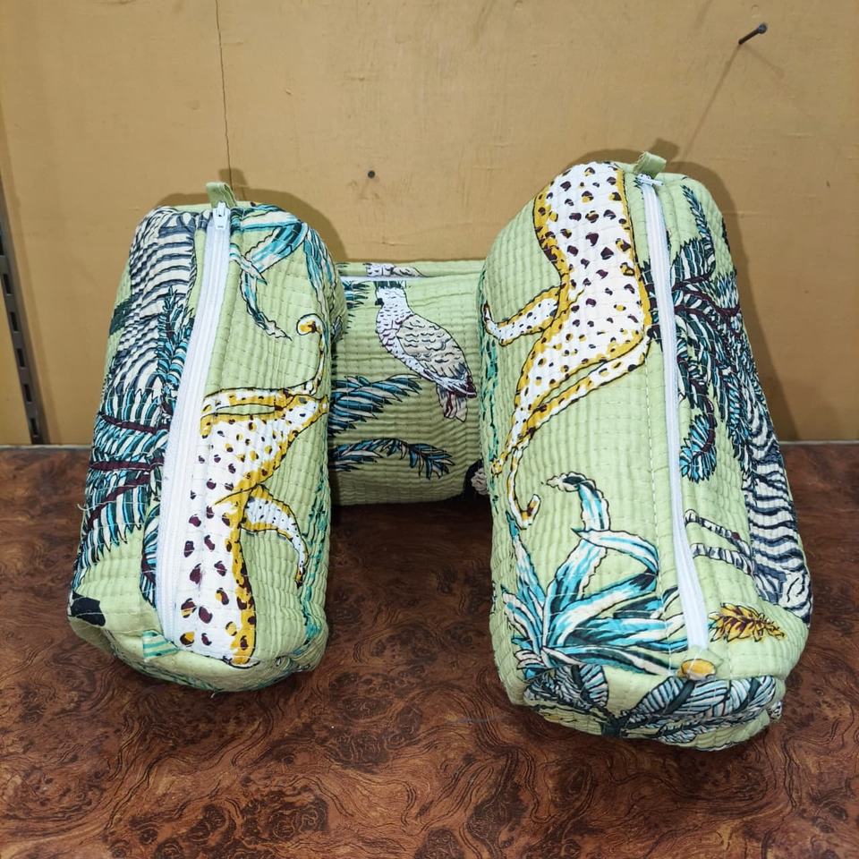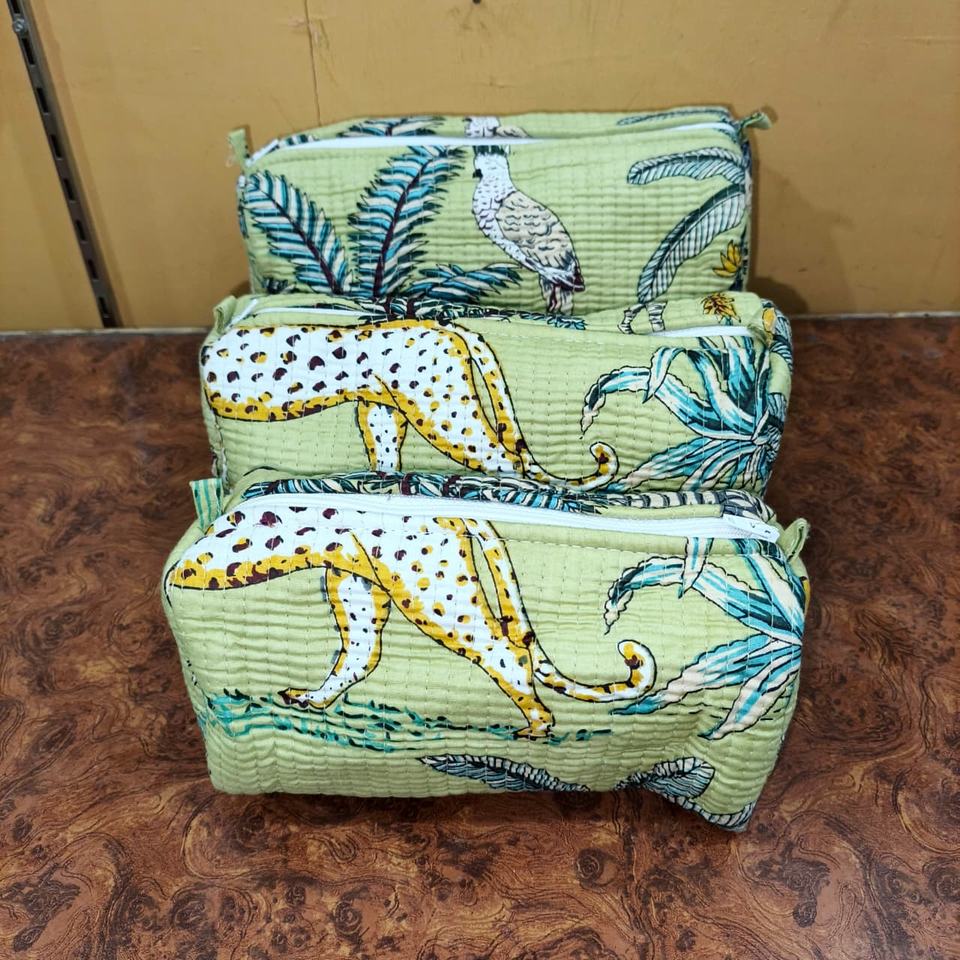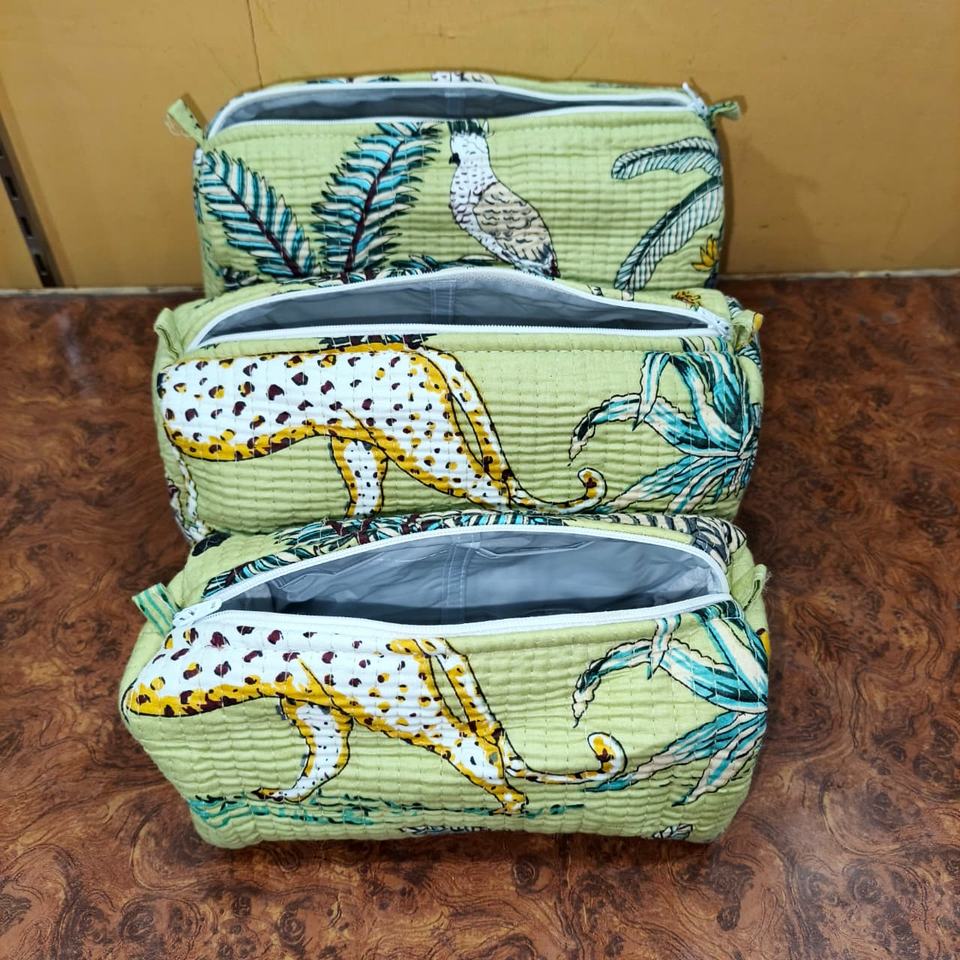กระเป๋าเครื่องสำอางพิมพ์ลายสัตว์ผ้าฝ้ายแบบพกพาขนาดใหญ่พร้อมซิปนำกลับมาใช้ใหม่ได้ กระเป๋าใส่เครื่องสำอางแบบเย็บติดกัน กระเป๋าใส่เครื่องสำอางสำหรับฤดูร้อน ทันสมัย