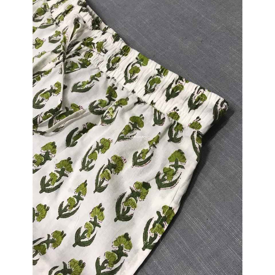 กางเกงขาสั้นผ้าฝ้ายพิมพ์ลายบล็อก-ผ้าฝ้าย 100% เอวกลาง ระบายอากาศได้ดี ตกแต่งลวดลาย ไซส์ใหญ่
