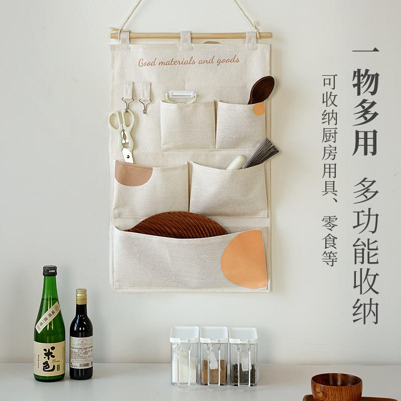 ถุงเก็บของแขวนผนังลายดอกฝ้าย ผ้าฝ้ายลินิน กระเป๋าหลายช่อง สำหรับห้องนอน ห้องน้ำ ห้องครัว ประตูหลังบ้าน