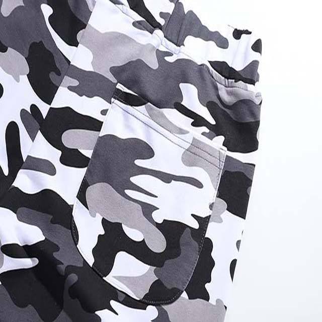 กางเกงขาสั้นผ้าฝ้ายระบายอากาศได้ดีสำหรับผู้ชายเสื้อผ้าไซส์ใหญ่พิเศษดีไซน์ลายพรางสไตล์สตรีทเอวยางยืดมาใหม่ฤดูร้อน