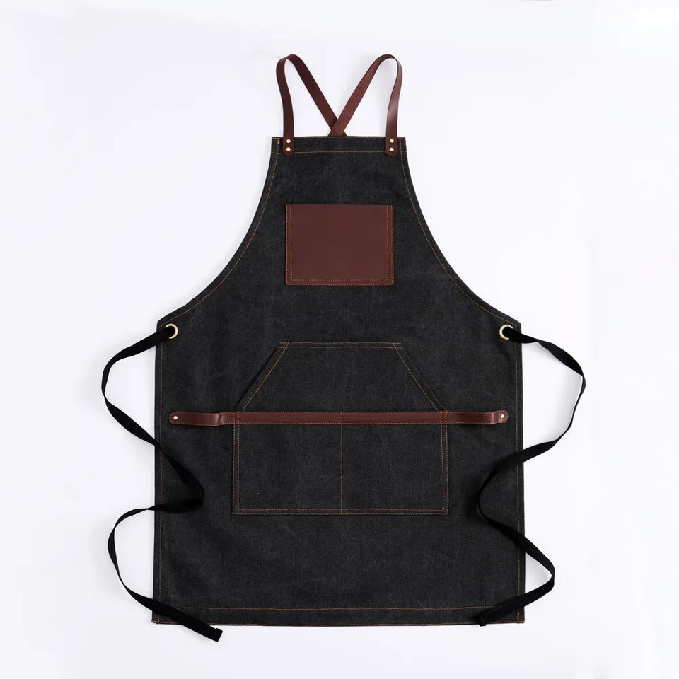 ผ้ากันเปื้อนผ้าใบคอตตอนแบบมีหลายกระเป๋าหนาพิเศษผ้ากันเปื้อนสำหรับทำอาหาร
