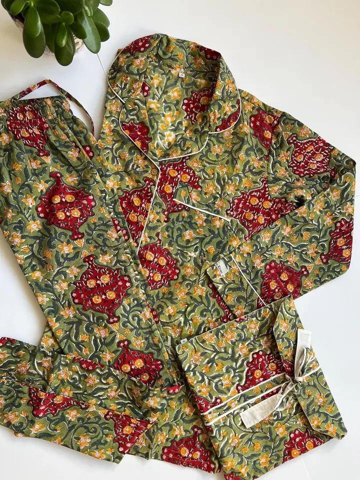 ชุดนอนผ้าฝ้ายแบบลำลองสำหรับผู้หญิงชุดเดรสใส่สบายแขนยาวเซ็กซี่พิมพ์ลายดอกไม้ทำด้วยมือ