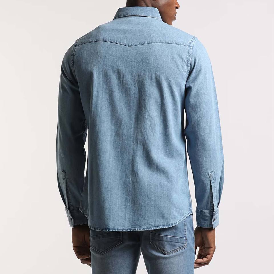 Cotton Men's Short Sleeve Denim Shirt Custom Made Factory Wholesale Knitted Weave for Breathability