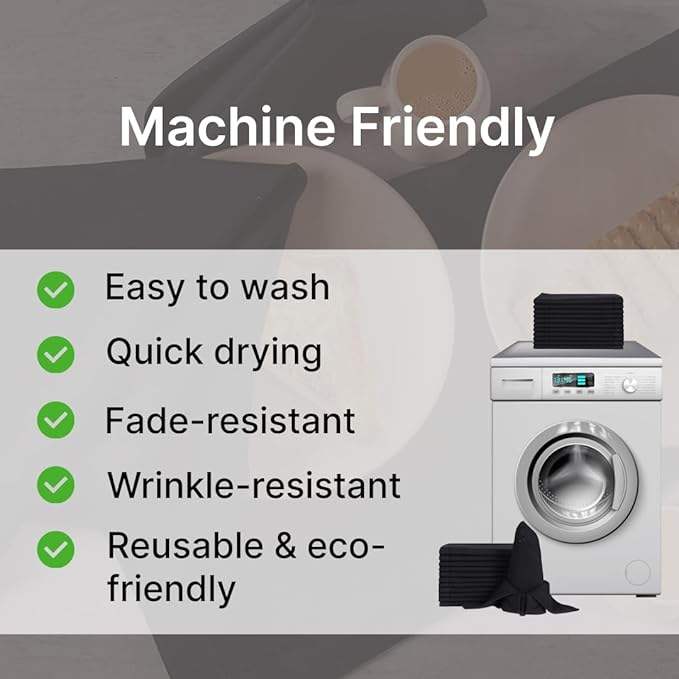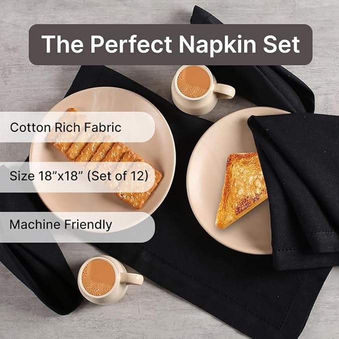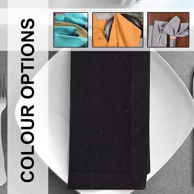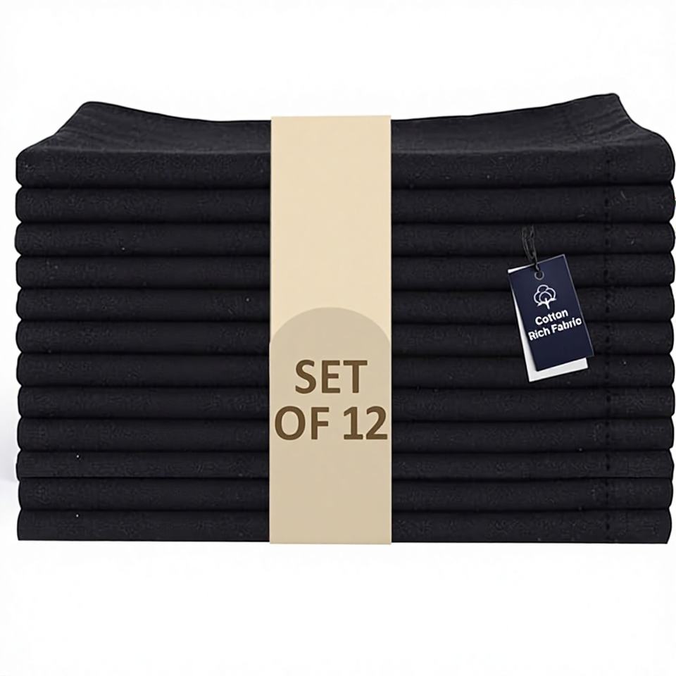 ผ้าเช็ดปากดินเนอร์ผ้าฝ้าย ขนาด 18x18 นิ้ว นุ่ม ซึมซับดี สบาย - เหมาะสำหรับงานอีเว้นท์และการใช้งานทั่วไป - สีดำ