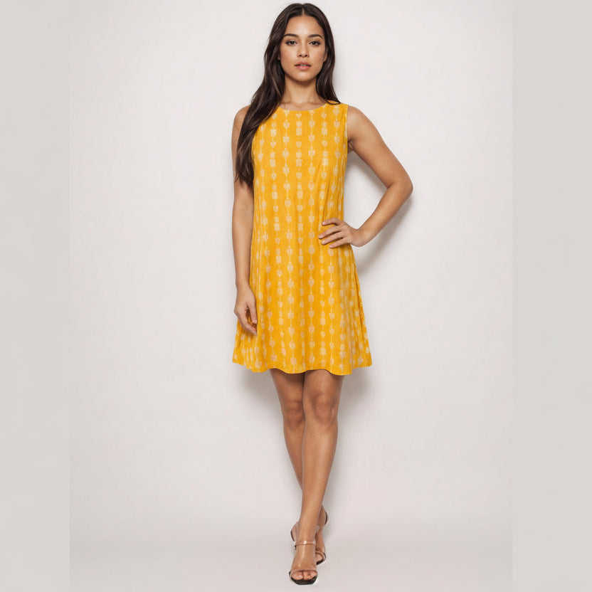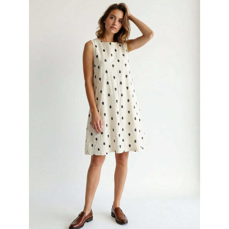 เดรสผ้าฝ้ายทอ 100% ลายพิมพ์โดบี้ ทรงเอไลน์ ความยาวปานกลาง สวมใส่สบาย เหมาะสำหรับออฟฟิศและลำลอง ตกแต่งด้วยซิป ดีไซน์เซ็กซี่ ใส่ได้ในฤดูร้อน ระบายอากาศได้ดี