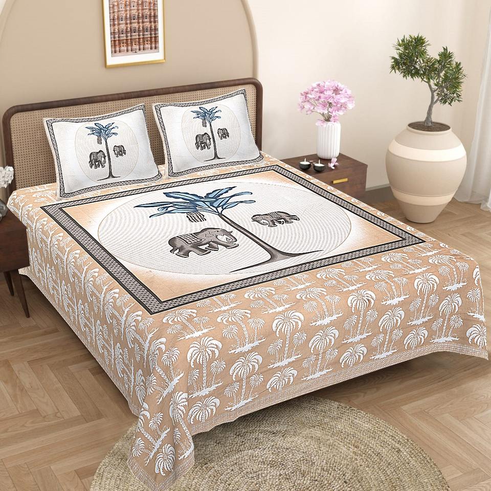 ผ้าปูที่นอนคู่ผ้าฝ้ายพร้อมปลอกหมอน 2 ใบ ลายพิมพ์บล็อกด้วยมือ ชุดผ้าปูที่นอนและปลอกหมอน ขนาดคิงไซส์ ผ้าปูที่นอนพิมพ์ลายผ้าฝ้ายพรีเมียม