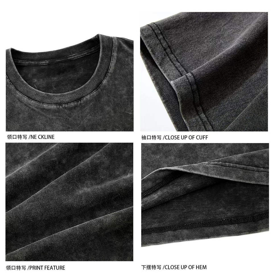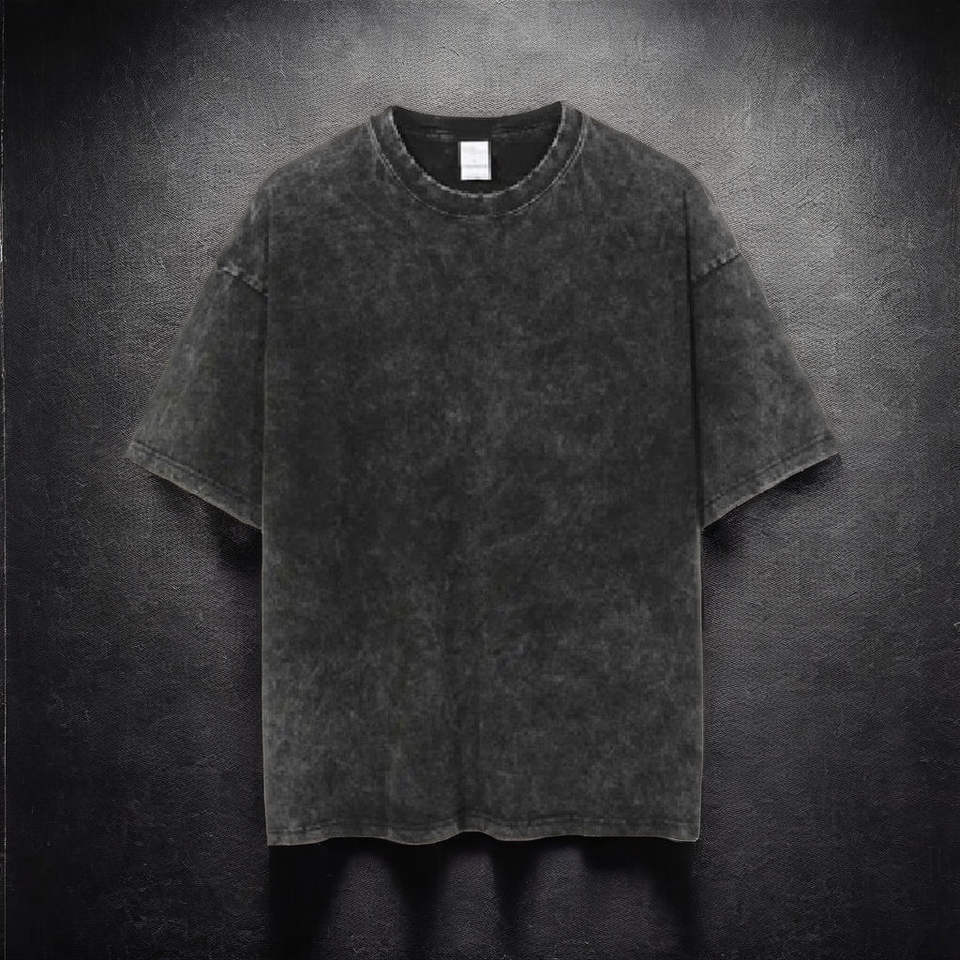 เสื้อยืดคอตตอนทรงหลวมไหล่ตก สีดำฟอกย้อม ทรงยาว ผ้าถักเนื้อบางเบา ไซส์พลัส