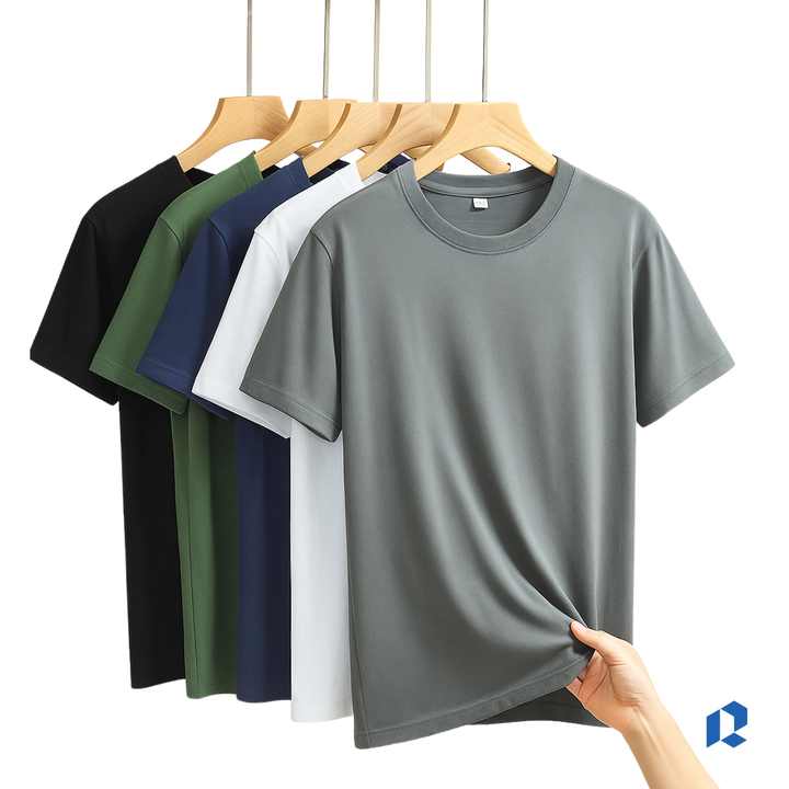 เสื้อยืดคอตตอนขายส่ง สั่งทำโลโก้ได้ เสื้อยืดผู้ชายทรงปกติ คอกลม แขนสั้น เรียบง่าย สบายๆ