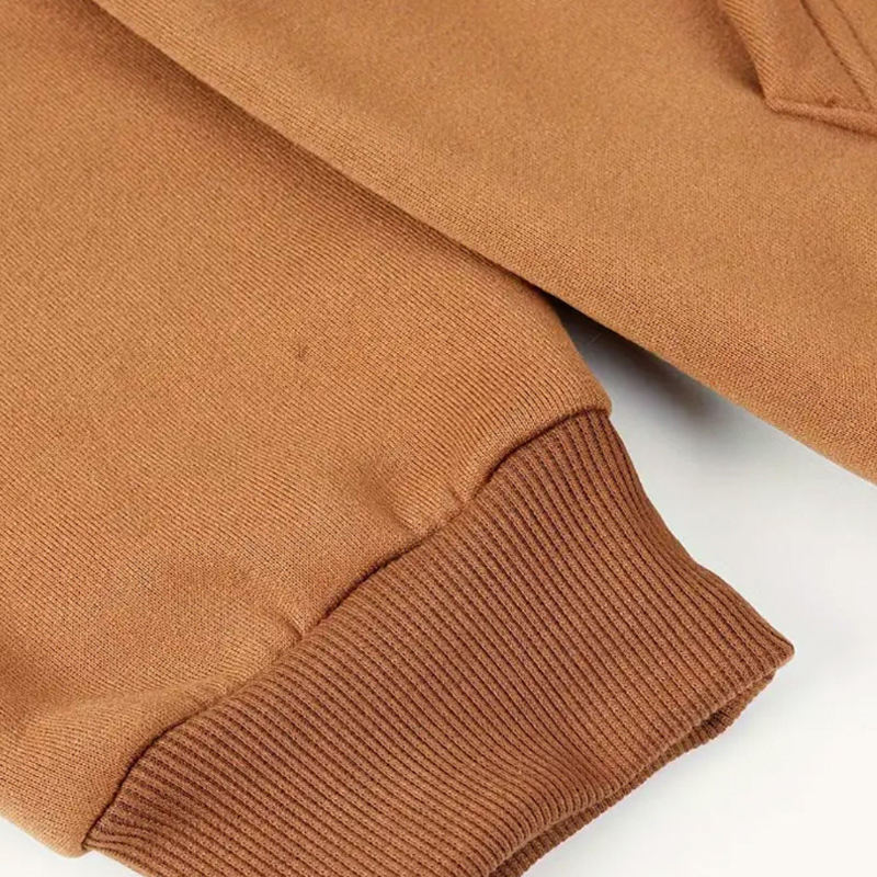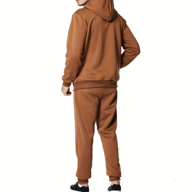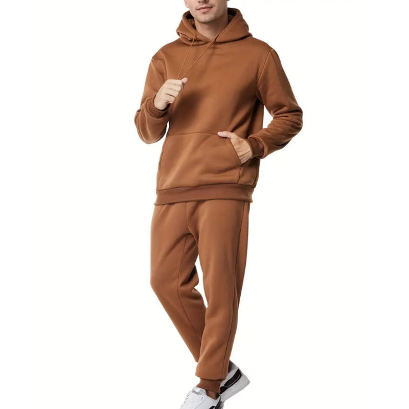 ชุดกีฬาผ้าฝ้ายฟลีซมีฮู้ด สีพื้น แขนยาว เสื้อพูลโอเวอร์มีกระเป๋า เสื้อฮู้ด กางเกงวอร์ม สำหรับผู้ชาย ชุดเซ็ตแทรคสูท