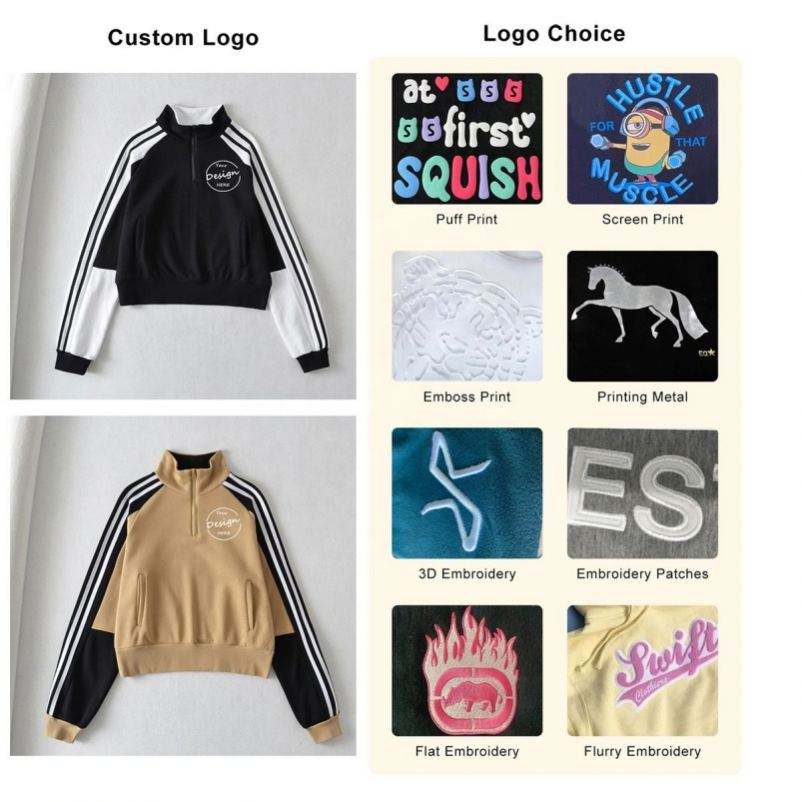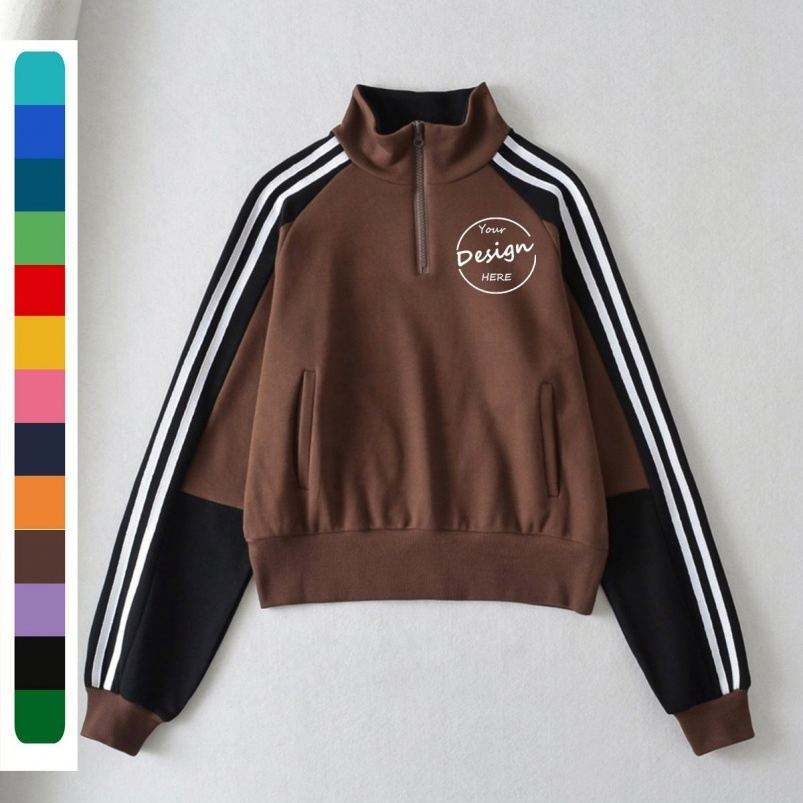 เสื้อสเวตเชิ้ตผ้าฝ้ายฟลีซแบบสวมหัว พิมพ์ลายซิลค์สกรีนด้านหน้าหลายสี ปักลายตามสั่ง ทรงหลวม ซิปครึ่งตัว คอปกอื่นๆ สำหรับผู้หญิง