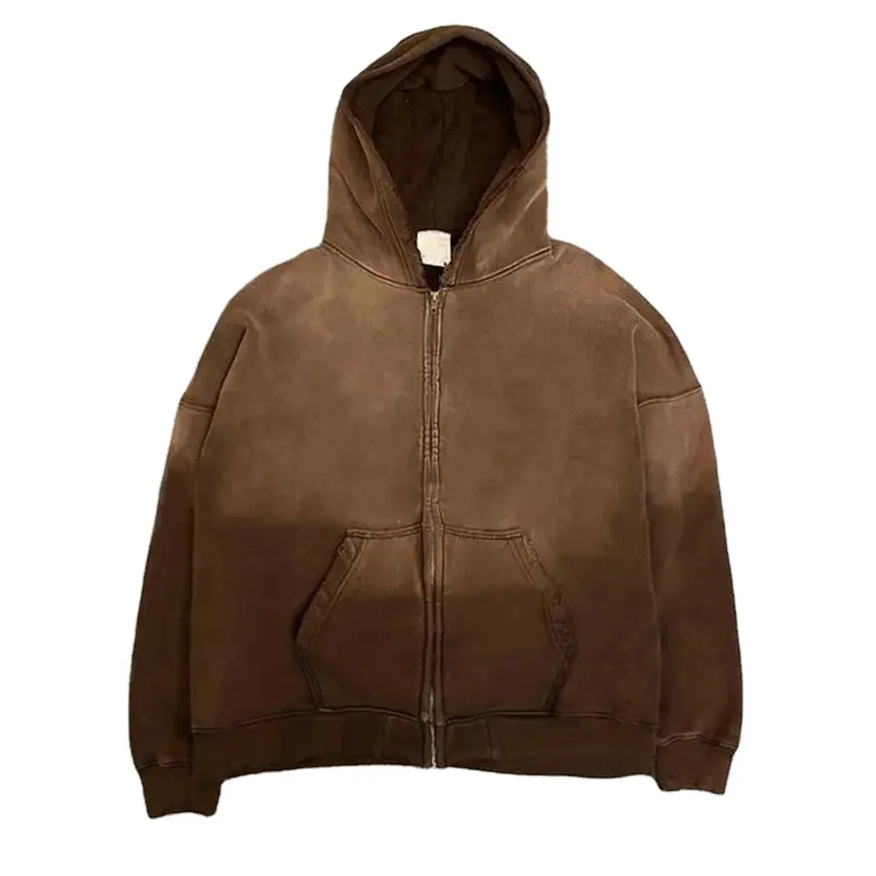 ชุดสเวตเตอร์ผ้าฝ้ายมีฮู้ดผ้าฟลีซสำหรับฤดูหนาวมีซิปทำลายแสงแดดซักด้วยกรดผ้าฟลีซปรับแต่งโลโก้ได้แบบวินเทจไซส์ใหญ่พิเศษ